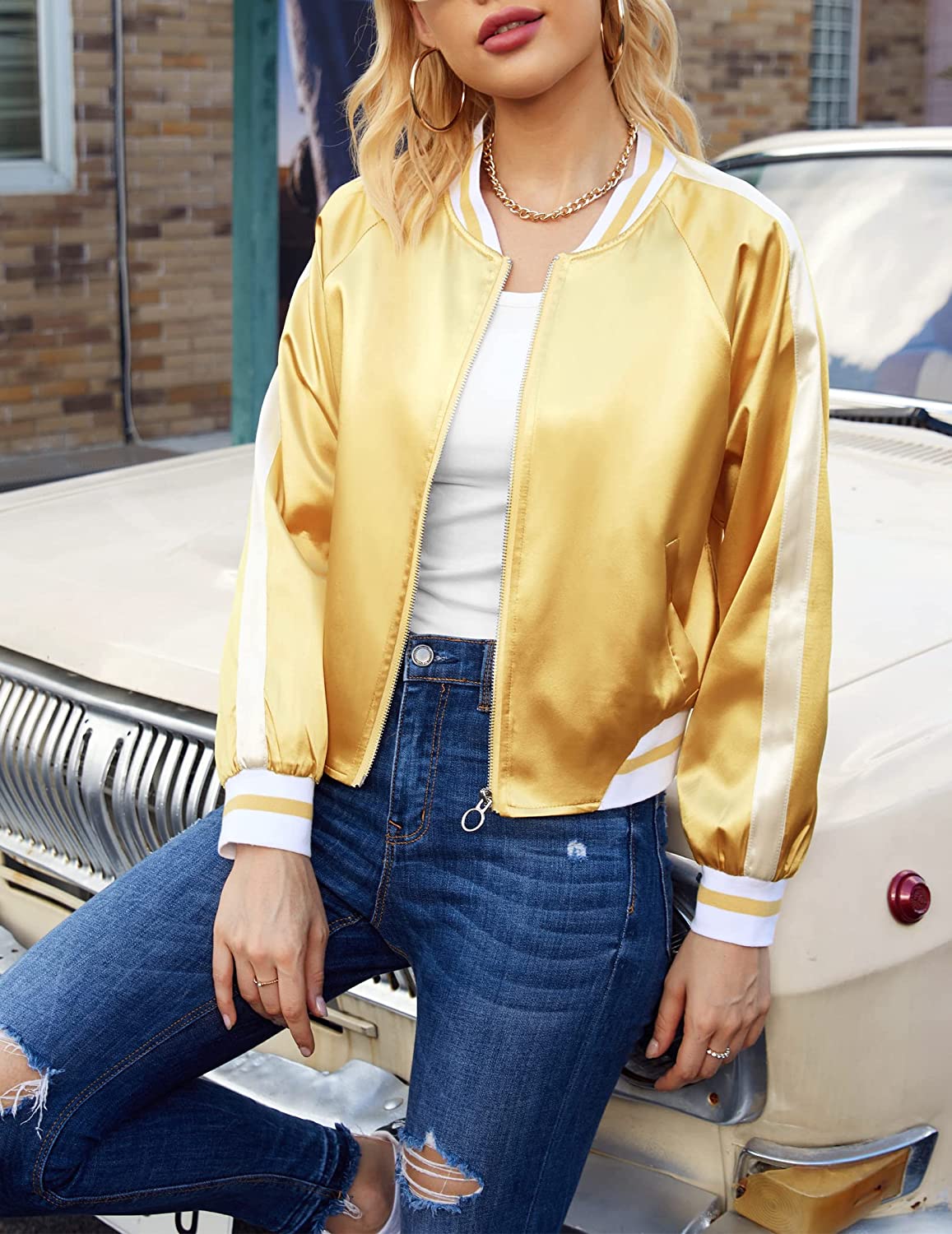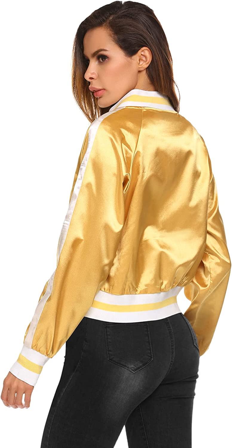Zeagoo Women's Classic Solid Striped Biker Jacket Zip Up Fashion Bomber Jacket Coat
