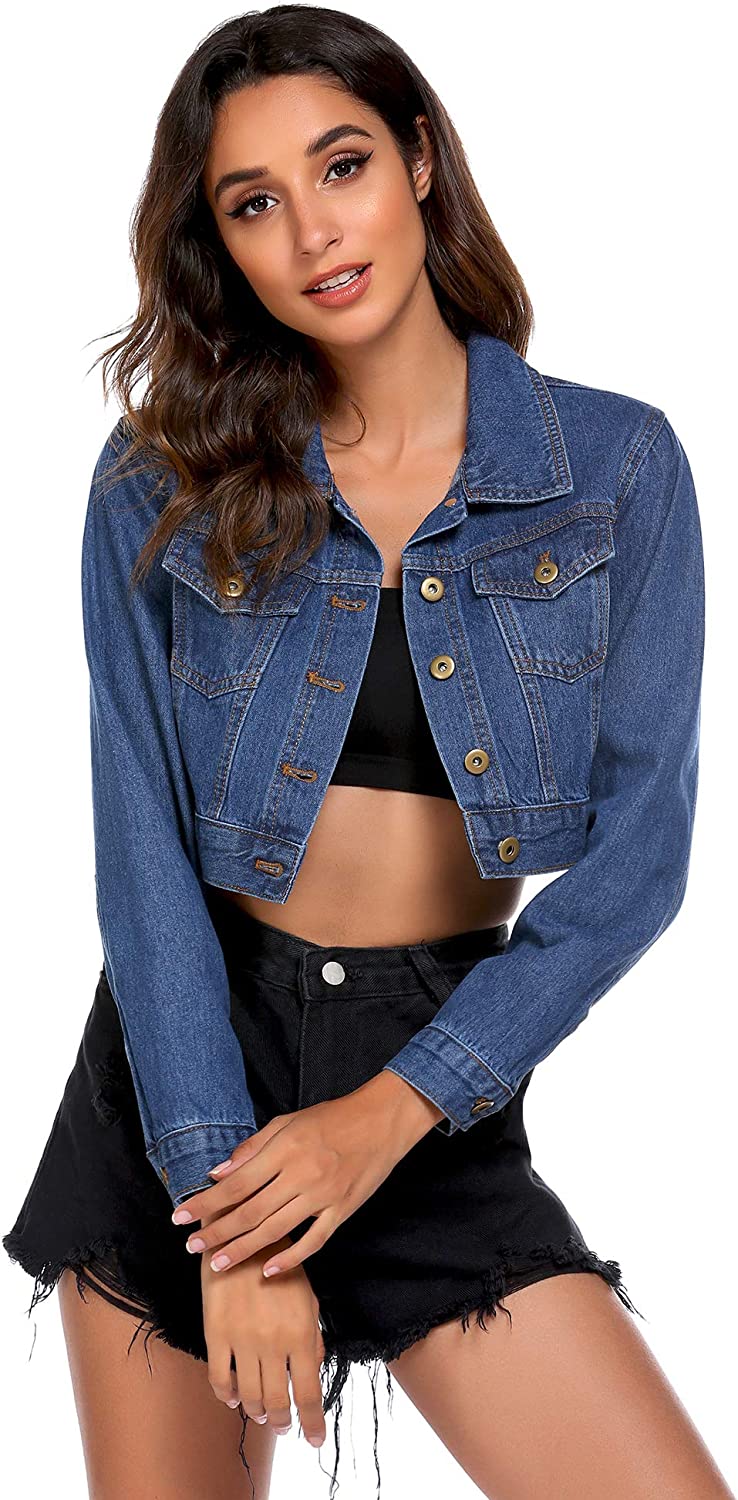 Zeagoo Womens Cropped Denim Jean Jacket Long Sleeve Button Down Basic Classic Jacket Coats
