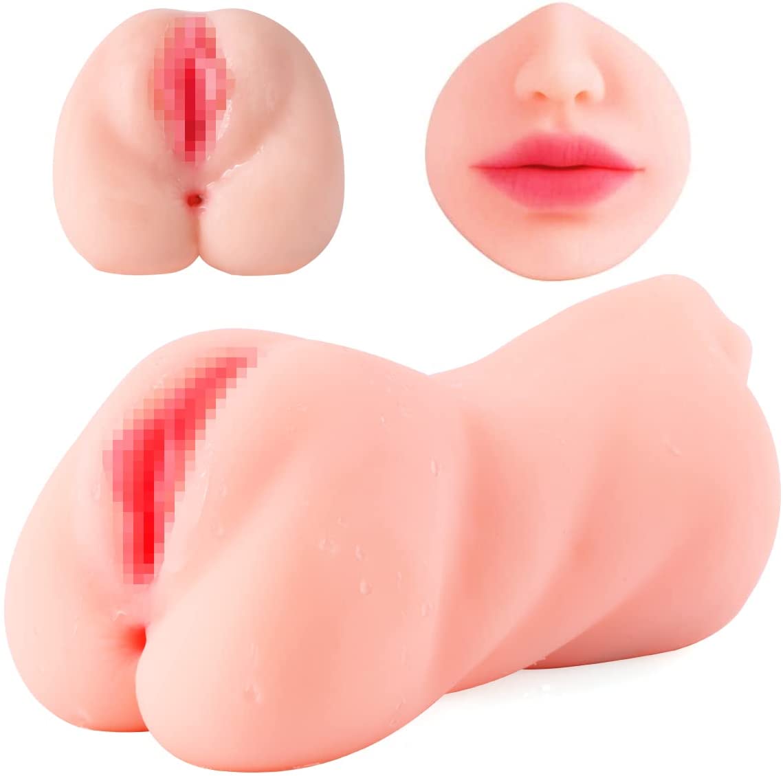 ZEMALIA 3 in 1 Male Masturbators Adult Sex Toys with Realistic Textured Mouth Vagina and Tight Anus, Men's Pocket Pussy Blowjob Stroker Anal Play Sex Toys for Men Masturbation