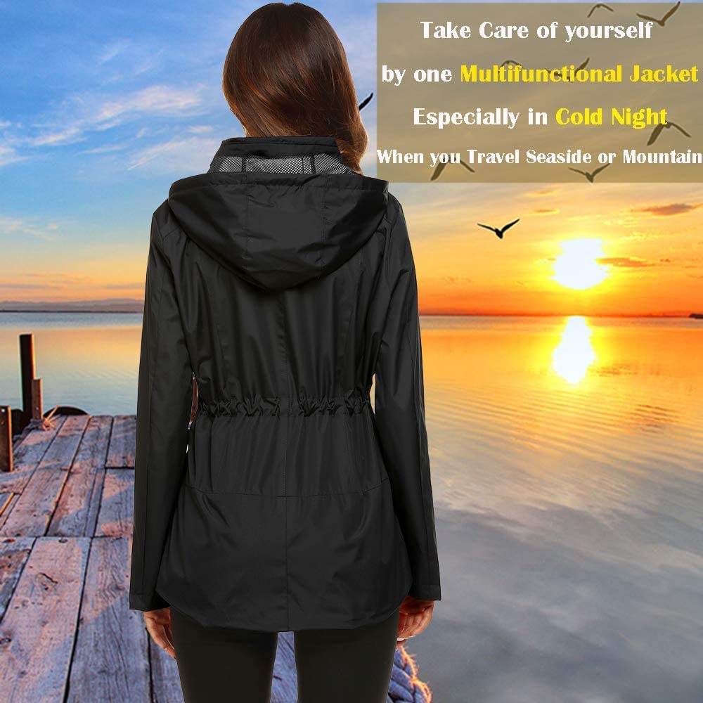 ZHENWEI Rain Jacket Women Waterproof with Lined Raincoat Outdoor Active Travel Hiking