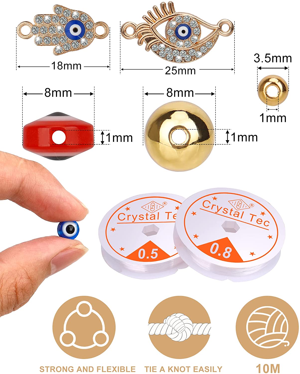 1022 PCS Evil Eye Beads for Jewelry Making, 8mm Flat Round Evil Eye Charms Colorful Evil Eye Bracelet Making Kit Easter Beads Decors for Crafts DIY Bracelet Earring Necklace Making