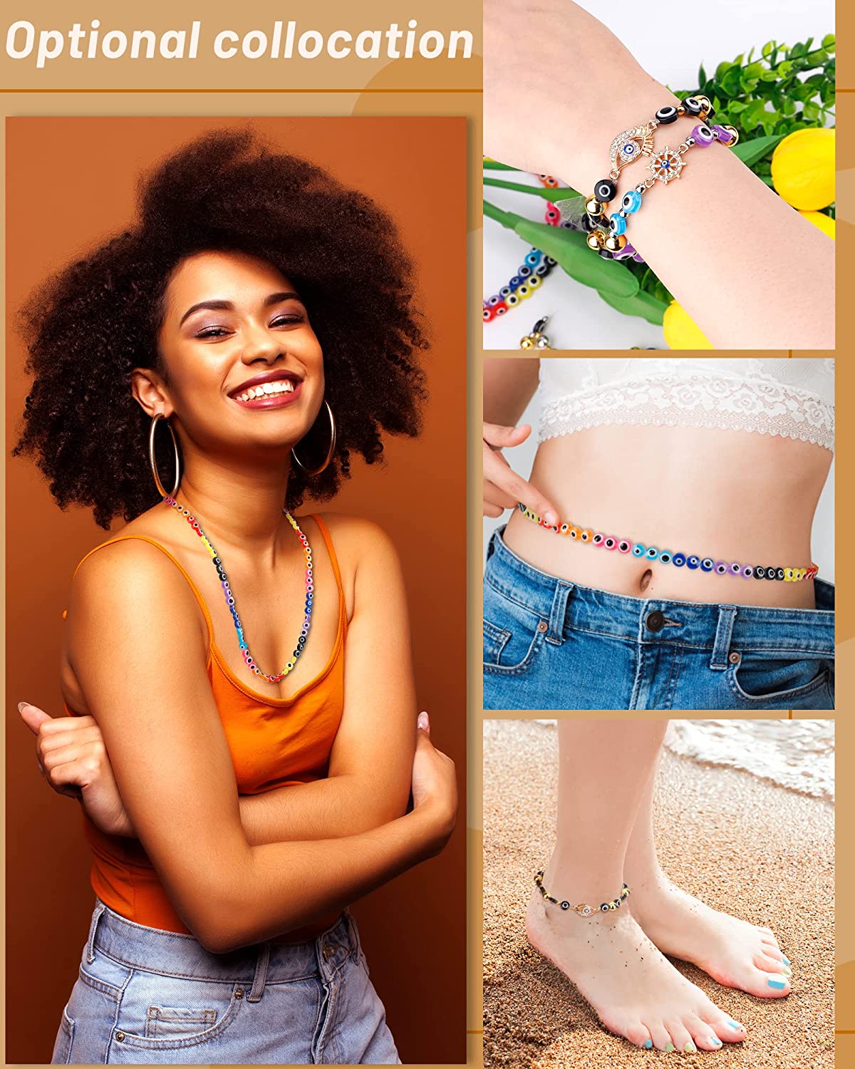 1022 PCS Evil Eye Beads for Jewelry Making, 8mm Flat Round Evil Eye Charms Colorful Evil Eye Bracelet Making Kit Easter Beads Decors for Crafts DIY Bracelet Earring Necklace Making