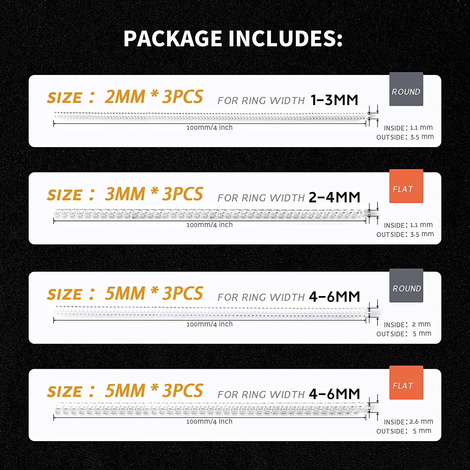 12 Pack Ring Size Adjuster for Loose Rings Invisible Transparent Silicone Guards Clip Noodle Jewelry Tightener Connector Fitter Resizer 4 Sizes Fit Almost Any Ring for Women and Men
