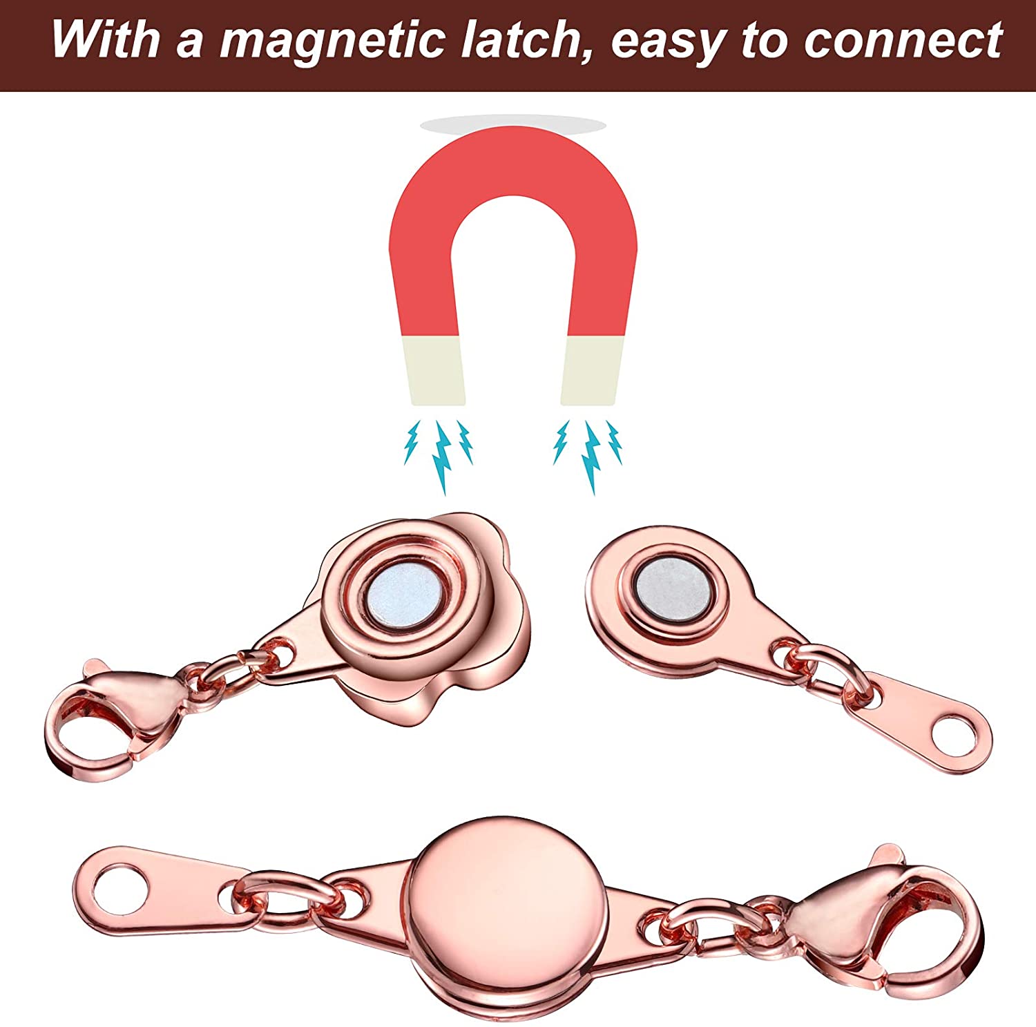 12 Pieces Locking Magnetic Clasps Rose Jewelry Magnetic Clasp Necklace Lobster Clasp Closures Magnetic Clasp Converter Chain Extenders for Jewelry Necklace Bracelet (Gold, Silver, Rose Gold)