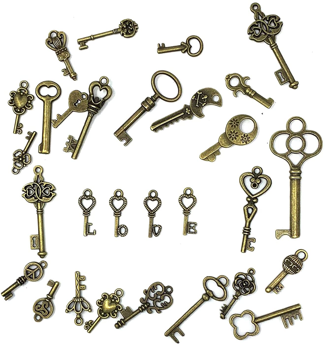 125 PCS Vintage Skeleton Key Set Charms, JIALEEY Mixed Antique Style Bronze Brass Key Set Charms for Pendant DIY Jewelry Making Wedding Party Favors