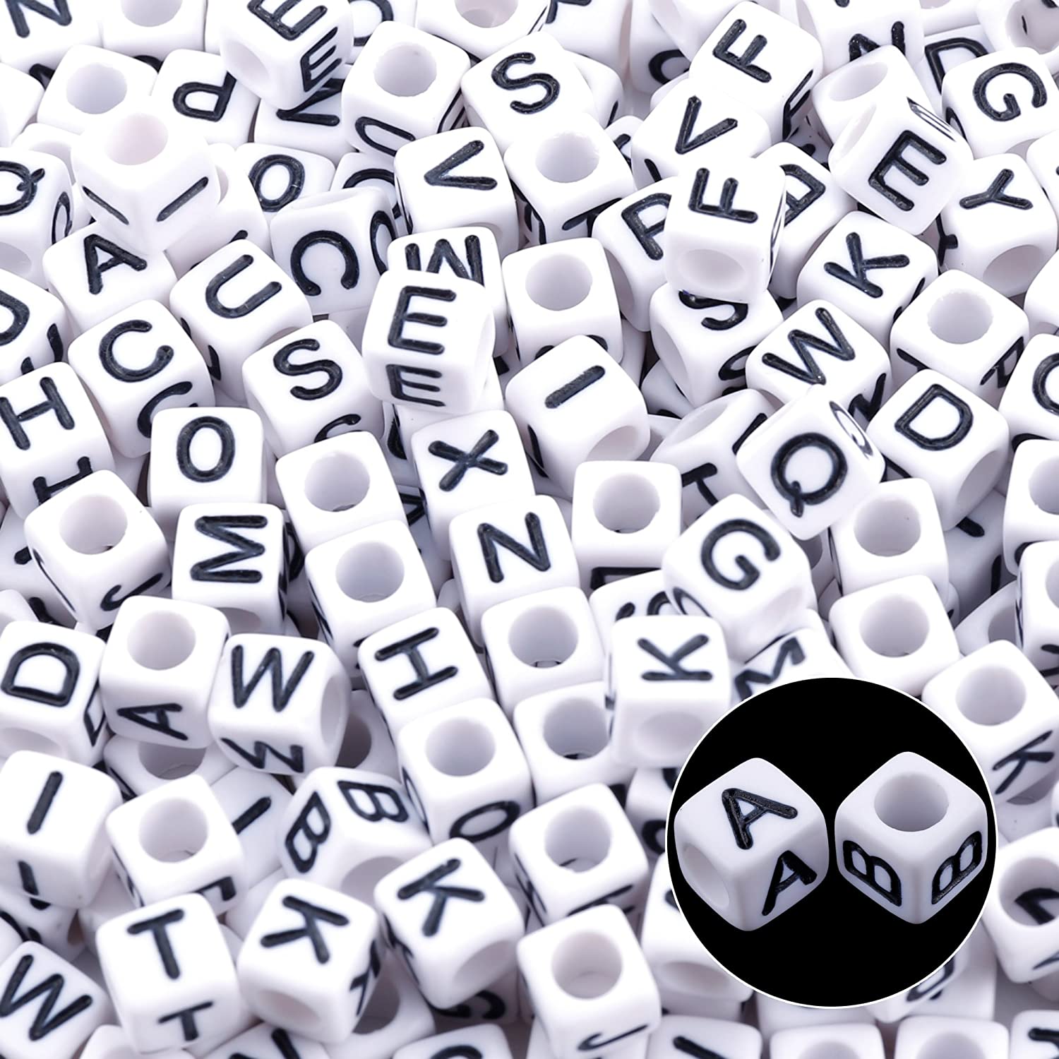 1400pcs 5 Color Acrylic Alphabet Cube Beads Letter Beads with 1 Roll 50M Crystal String Cord for Jewelry Making(6mm)
