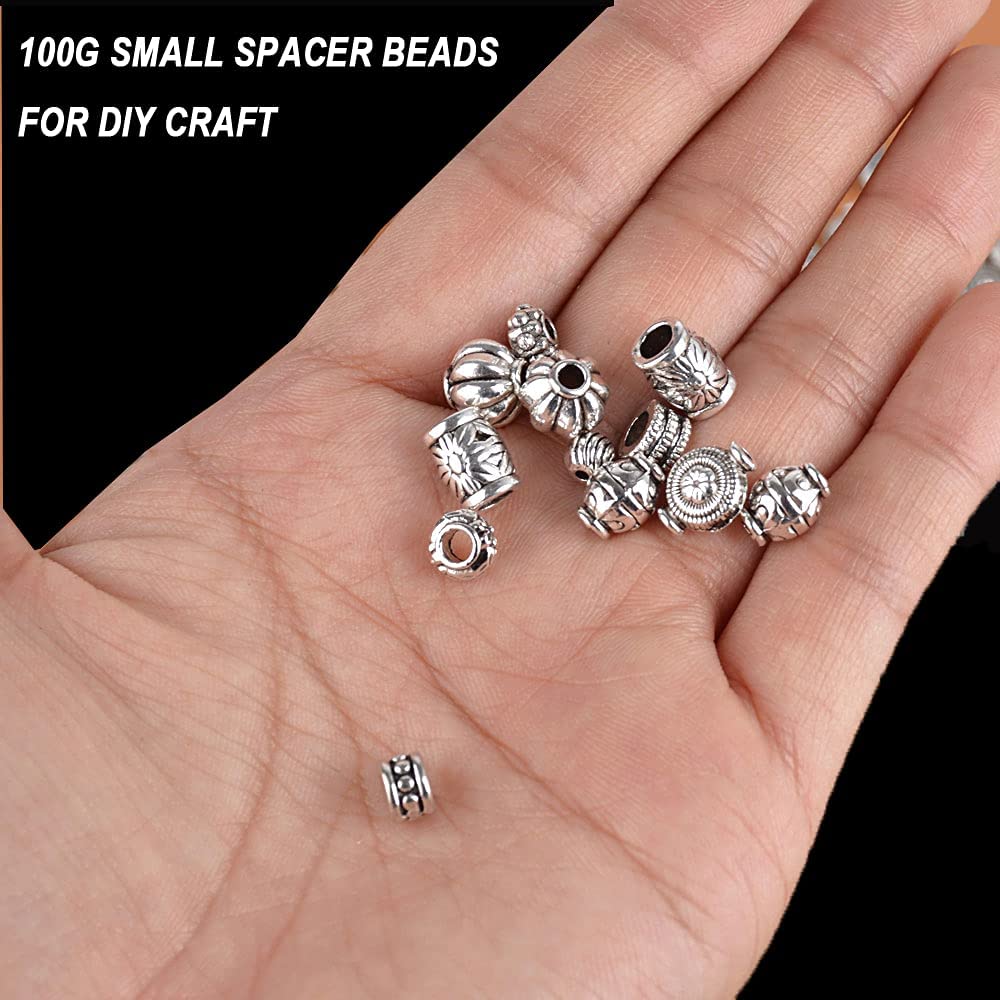 180 Silver Spacer Beads - 100g Tibetan Antique Silver Color Metal Beads Small Loose Spacer Beads with Radom Styles for Jewelry Making DIY Charm Bracelets