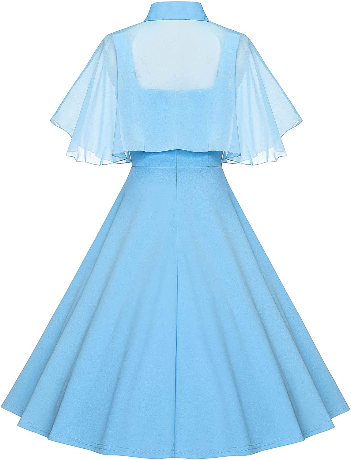 1950s Dresses for Women Vintage Goth Swing Cocktail Dress with Pockets and Chiffon Shawl
