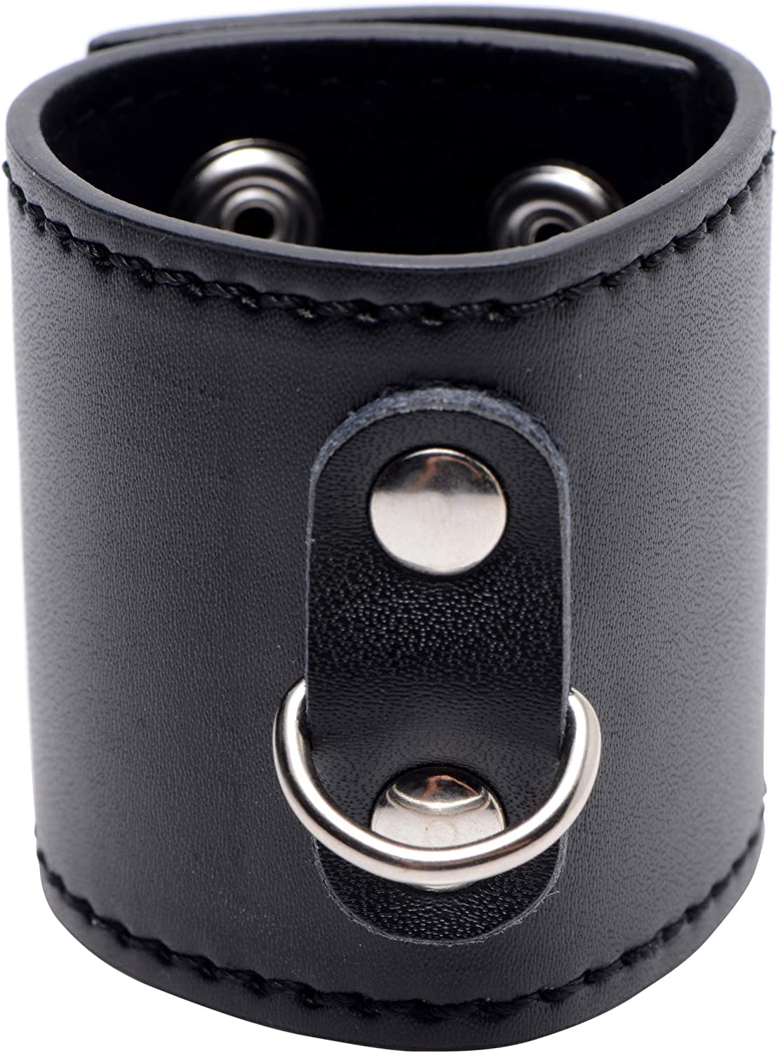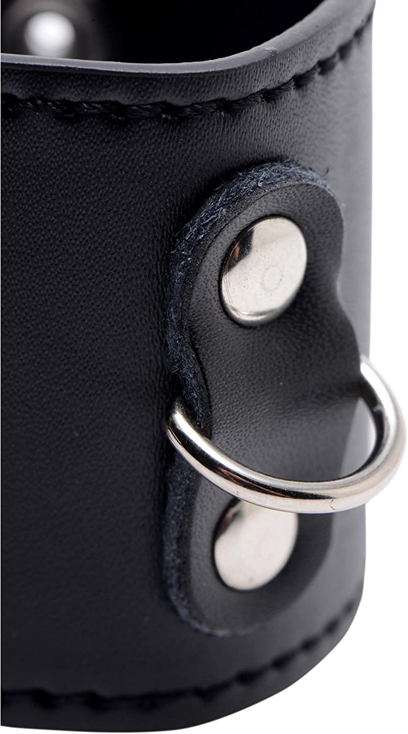 Whether you are masturbating, having sex with your lover, or being teased by your Master or Mistress, you will love the unique sensation that this ball stretcher produces. As your balls retract during stimulation, this attractive cuff will resist, simulating a tugging feeling that many men find to be the height of ecstasy. This ball stretcher will also create a stunning visual for you and your lover to be turned on by. A D-ring at the front allows you, or your partner, to attach weights or other devious accessories. The snap closures allow you to easily and quickly remove the device whenever you please. Measurements: Adjusts from 5 to 6 inches in circumference. 2 inches in width. Material: PU leather, metal. Color: Black.