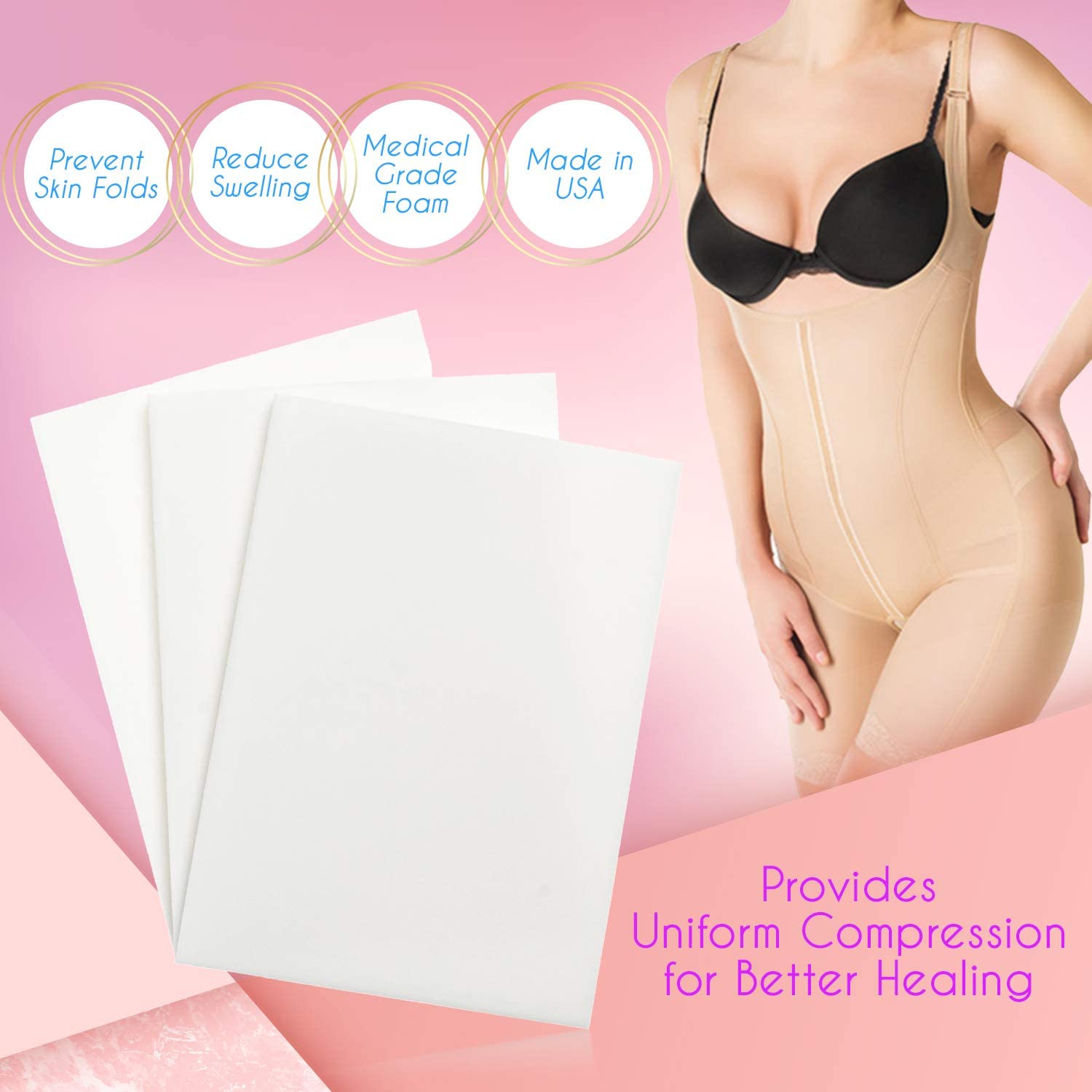 [3 Pack] Impresa Lipo Foam - Post Surgery Liposuction Foam For Use With Post Liposuction Surgery Compression Garments – Made in the USA