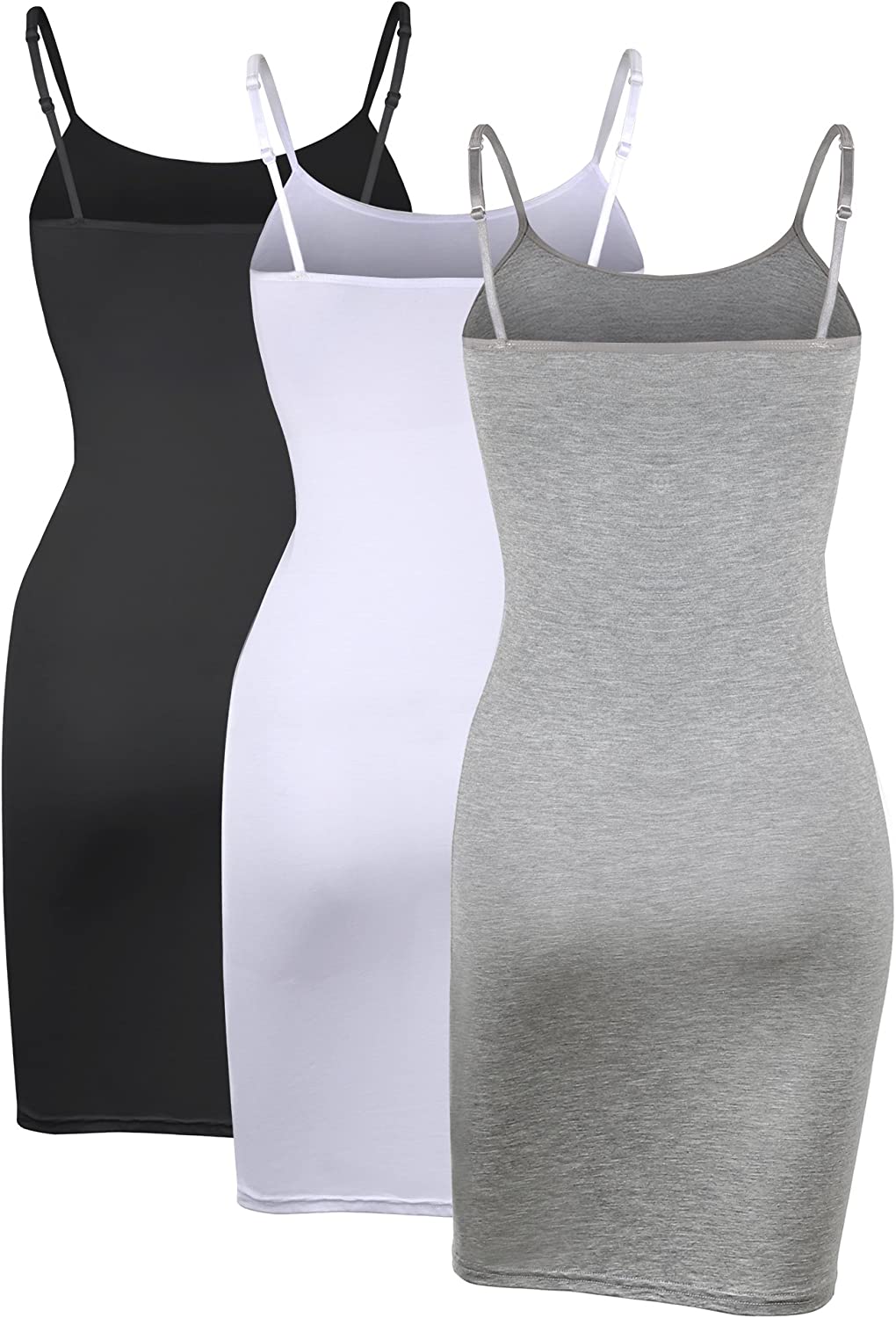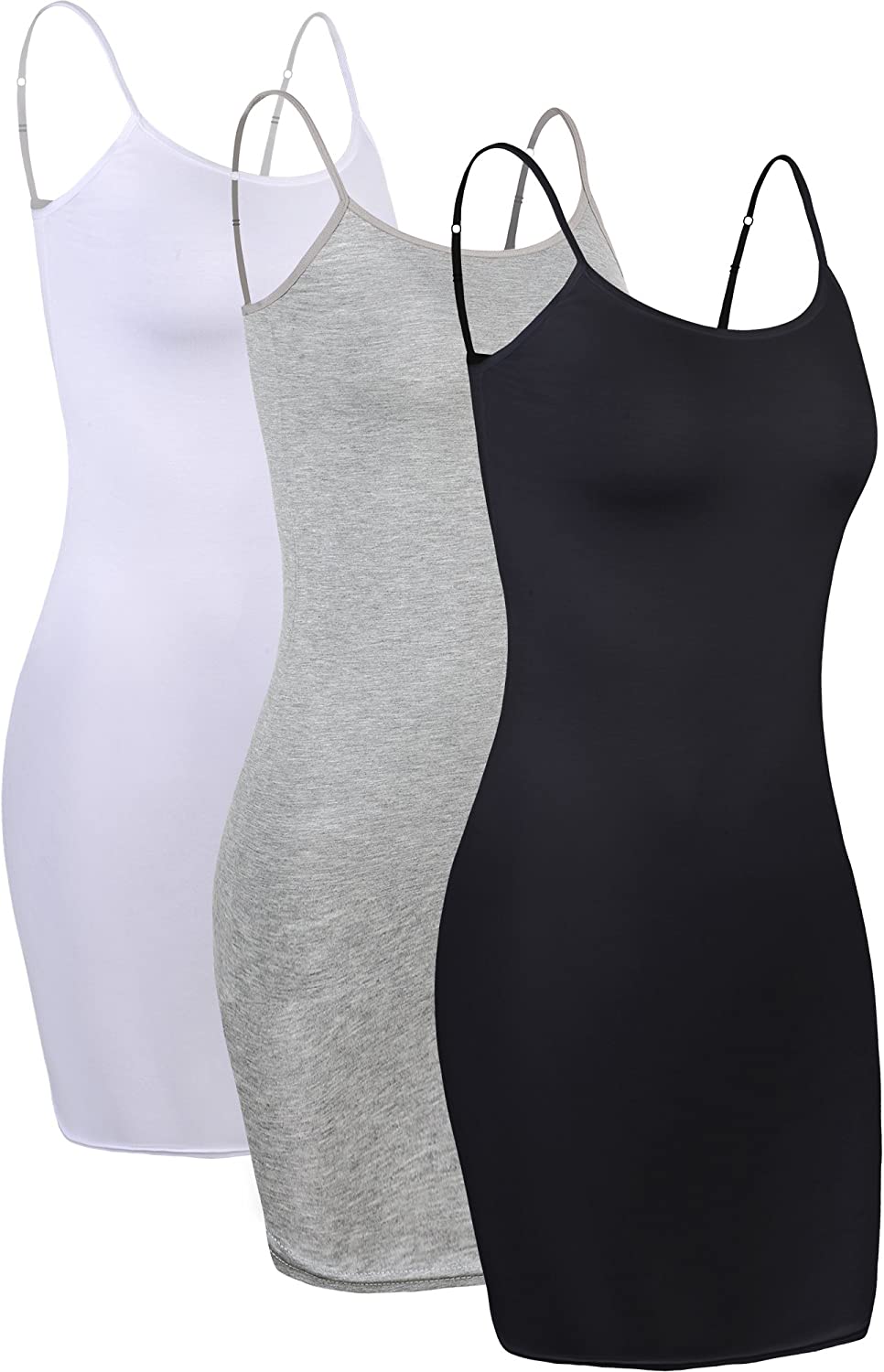 3 Pieces Basic Cami Women Long Tanks Top Dress with Strap, Solid Color