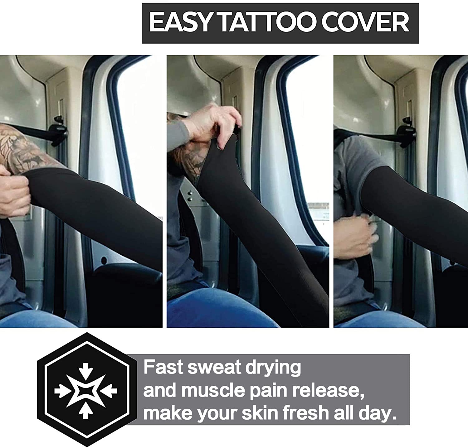 4-Pairs Arm Sleeves for Men and Women - Tattoo Cover Up - Cooling Sports Sleeve for Basketball Golf Football