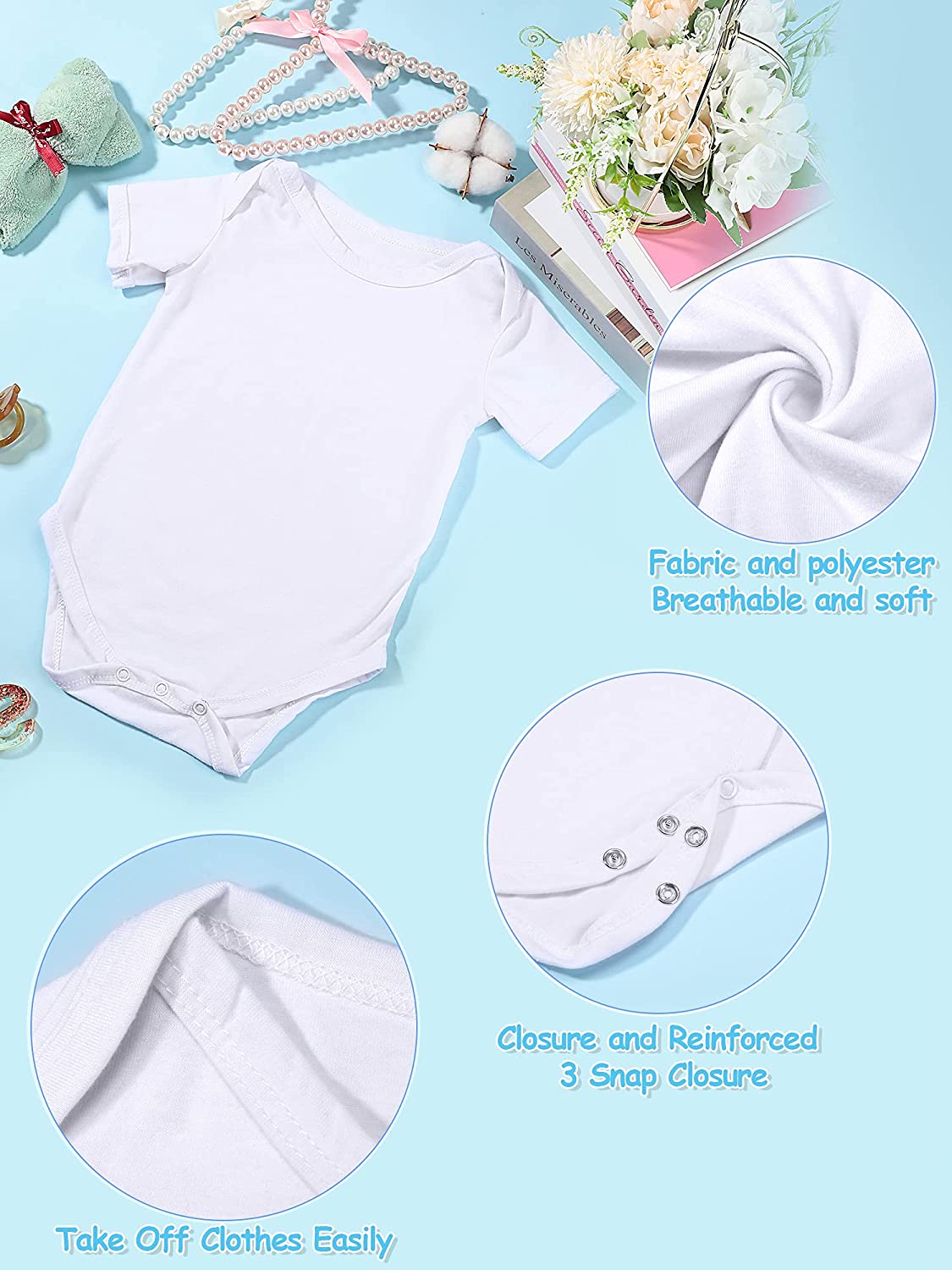 4 Pieces Baby Bodysuit Sublimation White Short Sleeve Shirt for Unisex Preemie Month Baby Boys Girls