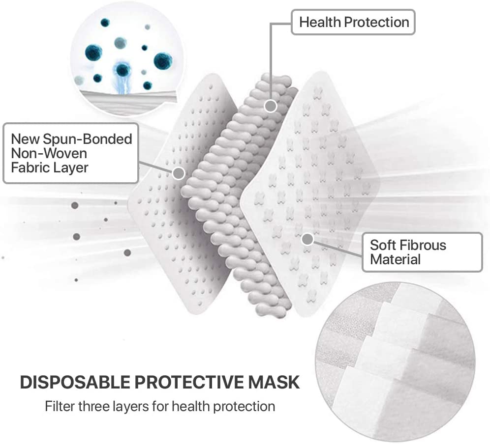 50 PCS Black Disposable Face Masks 3-Ply Filter Earloop Mouth Cover, Face Mask
