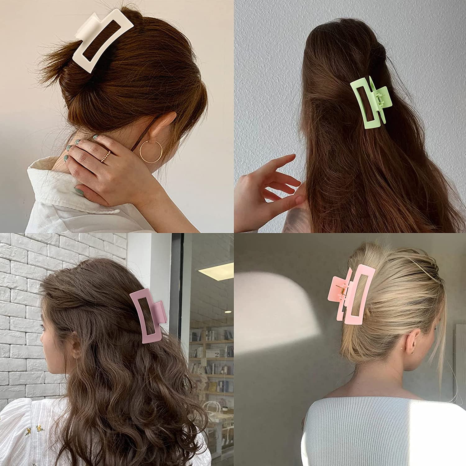 8pcs Hair Clips Set, Non-slip Hair Claw Clips 3.5 in. Acrylic Banana Rectangle Claw Clips Matte Hair Clips Hair Clamps Hair Styling Accessories for Women Girls Thin to Thick Hair, Colorful Series