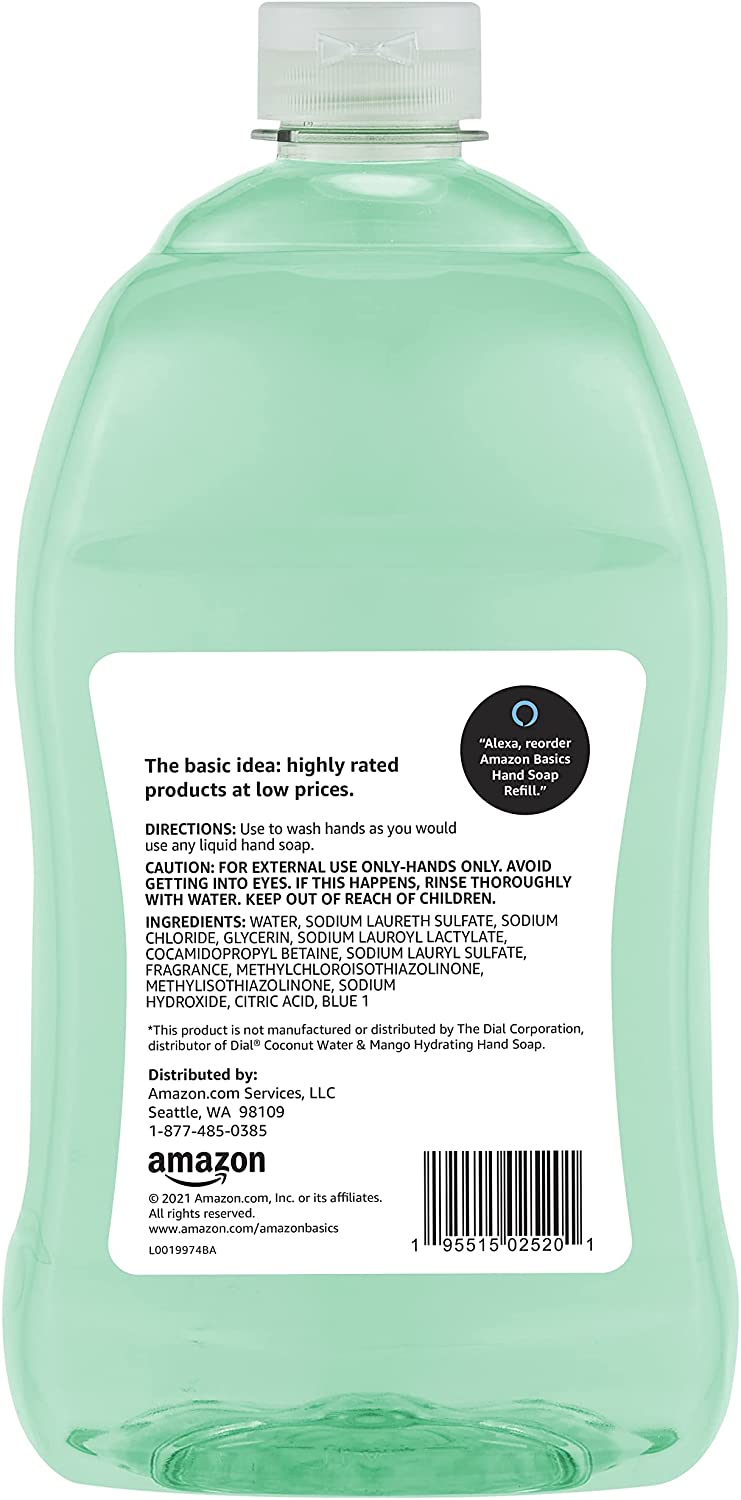 Amazon Basics Liquid Hand Soap Refill, Mango and Coconut Water Scent, Triclosan-Free, 56 Fluid Ounces, Pack of 1