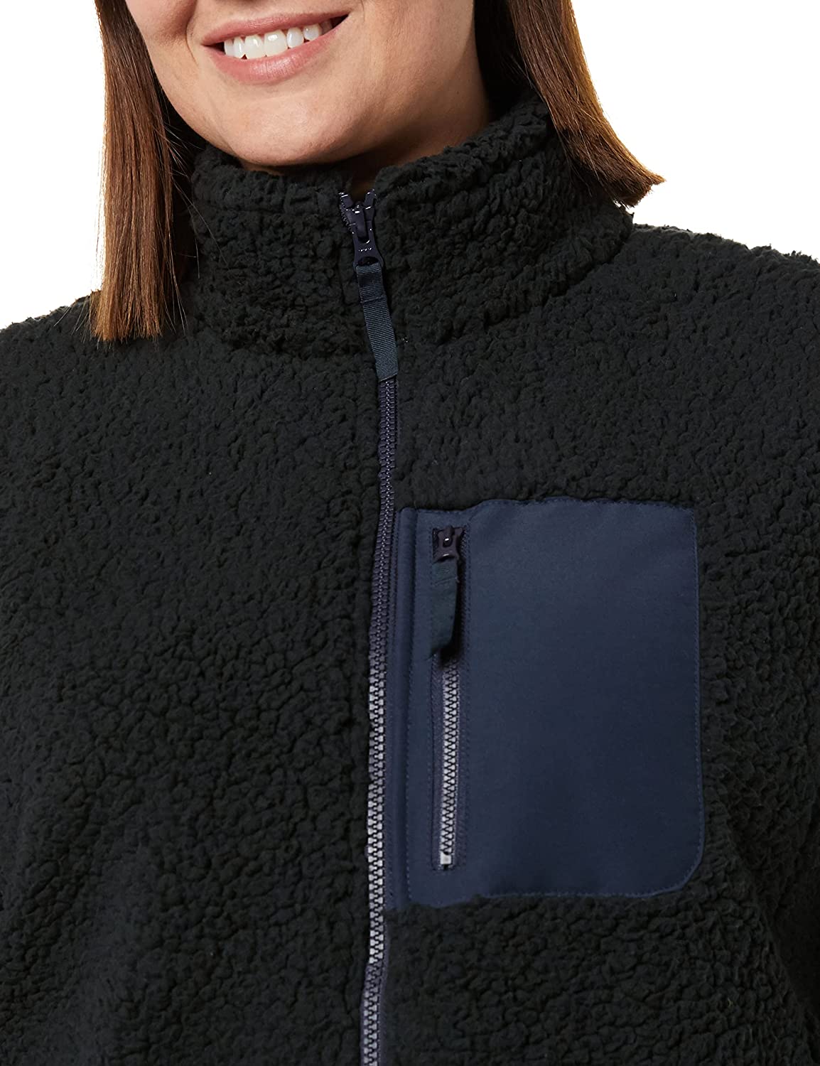 Amazon Essentials Women's Sherpa Long-Sleeve Mock Neck Full-Zip Jacket with Woven Trim