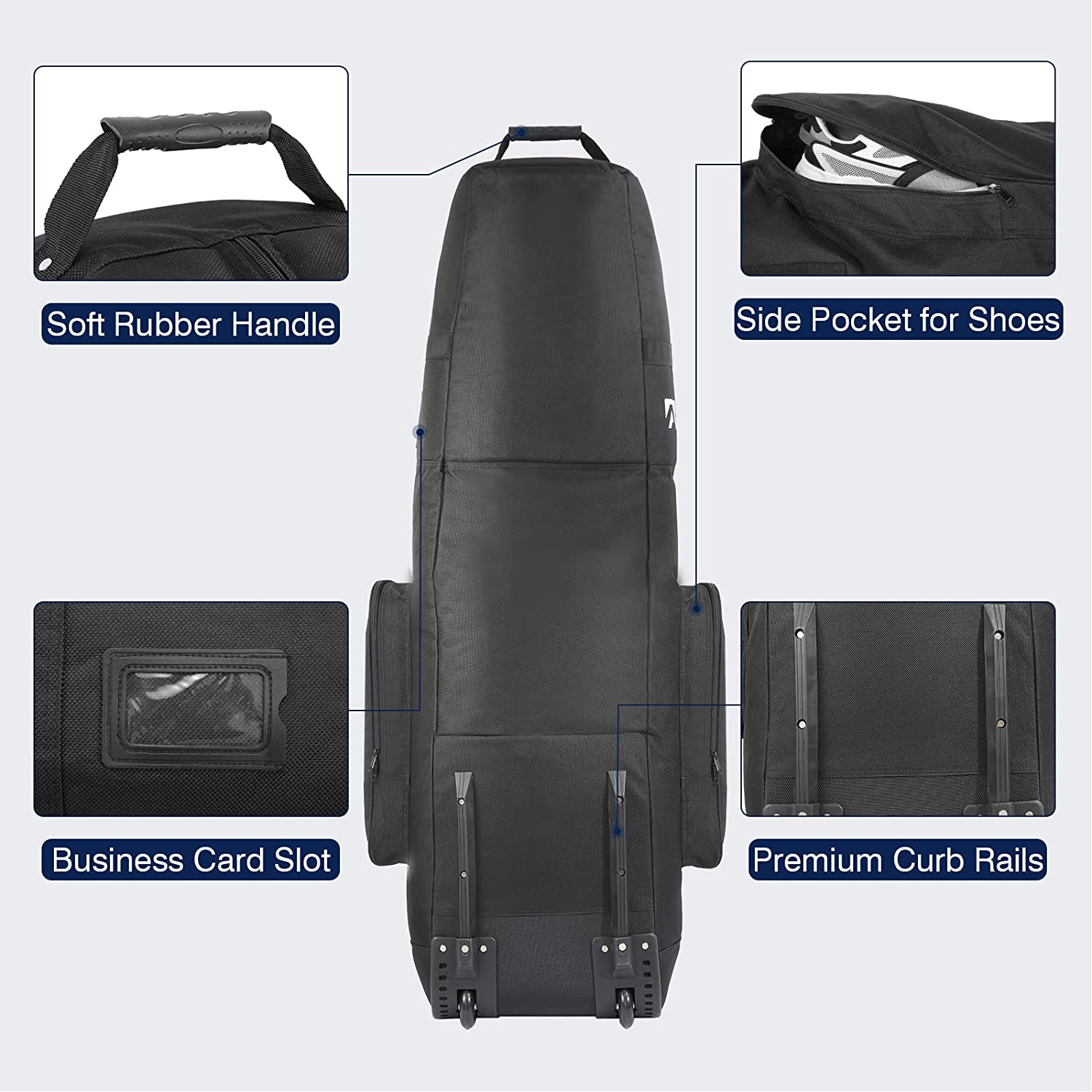 APTY Padded Golf Club Travel Bag with Wheels, Golf Luggage Case Cover for Airlines - 1200D Wear-Resistant Oxford, Waterproof Coating Layer, Universal Size