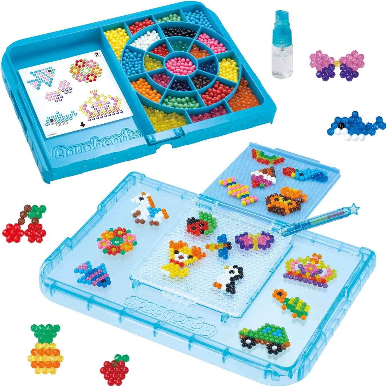 Aquabeads is the Original Water-Activated Bead Craft Kit! Since 2004, children throughout the world have created millions of Aquabeads designs. Great set for an introduction to the Aquabeads collection! This complete set contains over 800 jewel and solid beads in 16 colors, bead case, bead flipper with layout tray, sprayer, pen, template sheets & instructions. After crafting an original design, just spray your creations with water, no heat required! Create your designs quicker than before with the new bead flipper. Connect this set with the Deluxe Studio (sold separately) for double the fun! Suitable for children ages 4 and up.