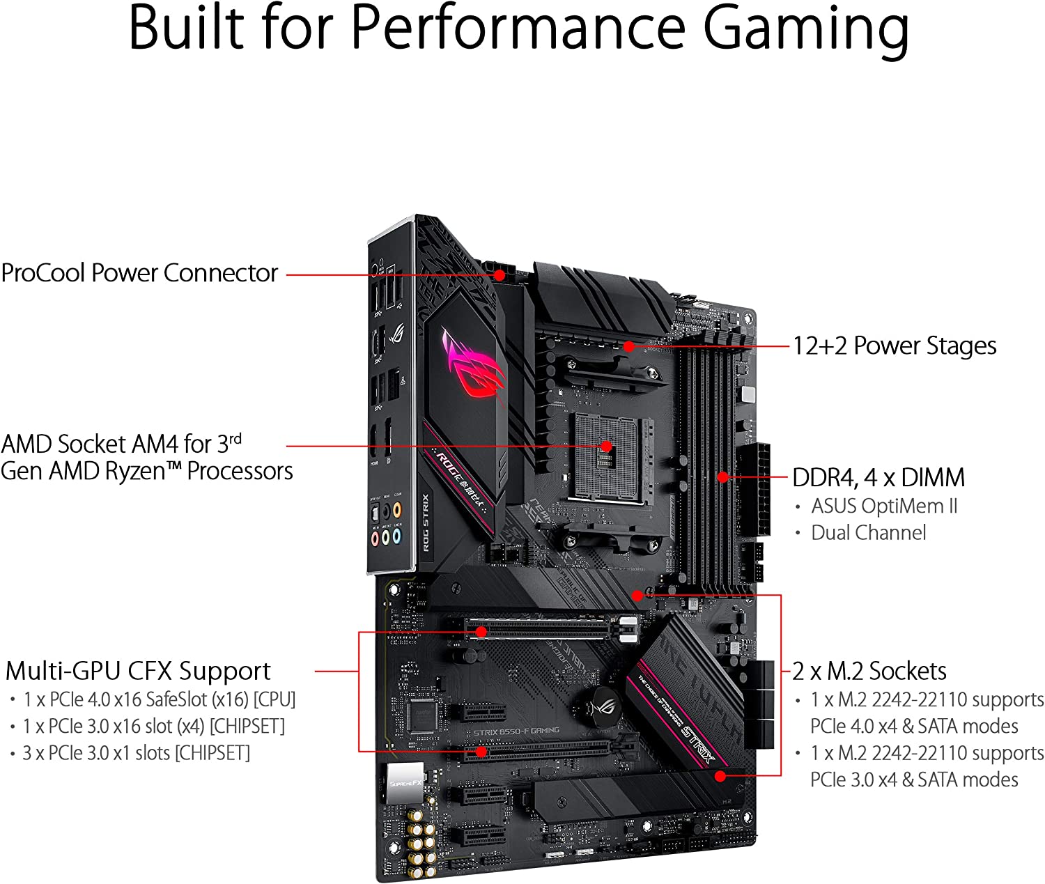 Experience next-level performance and connectivity with the ASUS ROG Strix B550-F Gaming, featuring PCIe 4. 0 and 2. 5Gb Ethernet. Robust power and effective cooling make the ROG Strix B550-F Gaming the perfect partner for 3rd Gen AMD Ryzen CPUs. Futuristic aesthetics, intuitive software, and a reliable Stack Cool 3+ design put your build in the winner’s circle. Free 3-months Adobe Creative Cloud Subscription: Receive complimentary access with the purchase of this product (offer valid from 9/15/2021 to 9/15/2022) visit /public/picture123/20230410/23bbm4qnx2387442 to claim.