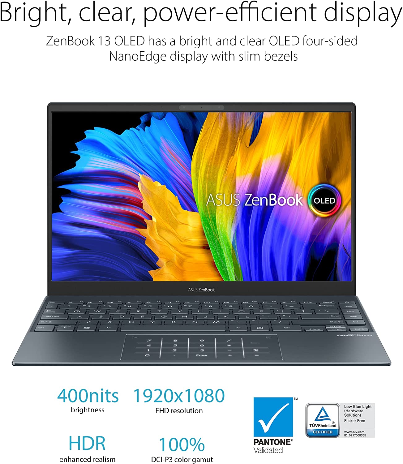 The beautiful new ZenBook 13 OLED brings you visuals like you’ve never experienced before. It’s also more portable than ever, weighing only 2.51lb with a 13.9 mm-thin profile. Even though It’s thinner, lighter, and incredibly compact, it includes HDMI, Thunderbolt™ 4 USB-C®, USB Type-A and a microSD card reader for unrivaled versatility. Built to deliver powerful performance and true-to-life visuals, ZenBook 13 OLED is your perfect choice for an effortless on-the-go lifestyle.
