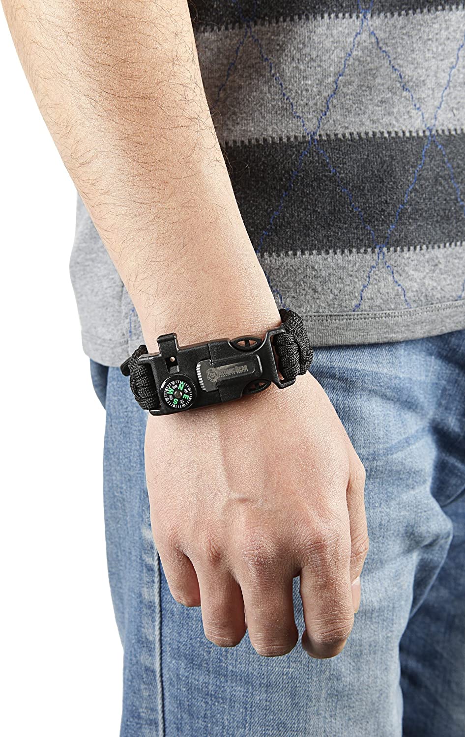 Atomic Bear Paracord Bracelet (2 Pack) - Adjustable - Fire Starter - Loud Whistle - Perfect for Hiking, Camping, Fishing and Hunting - Black & Black+Orange