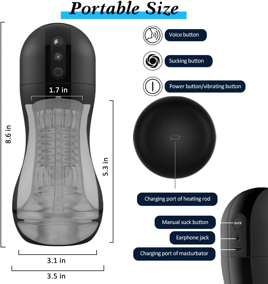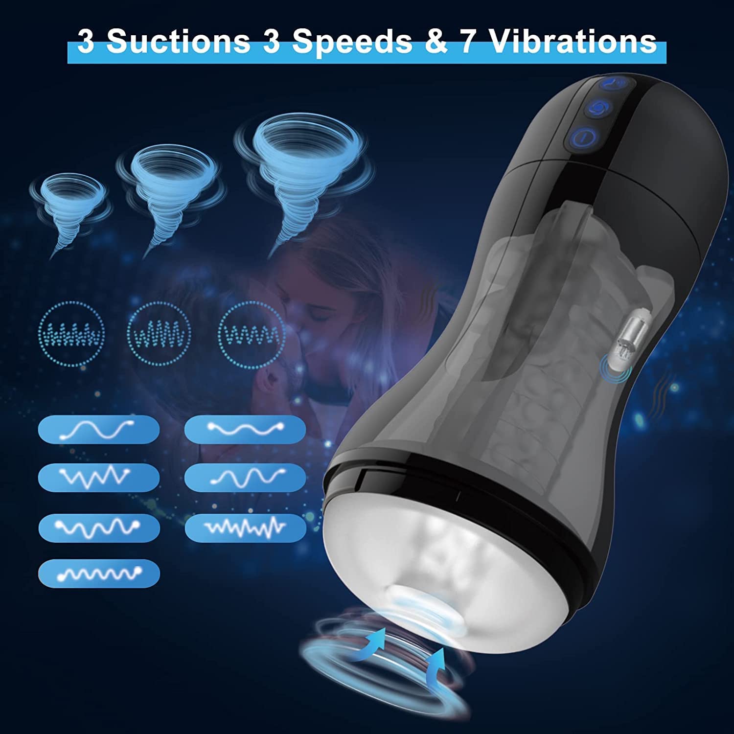 Automatic Blowjob Masturbation Toy, Sucking Male Sex Toy with 7 Vibrations 3 Suctions 3 Speeds for Men Pleasure, Hands-free Electric Pocket Pussy with Warming Rod Sexual Moans for Realistic Oral Sex