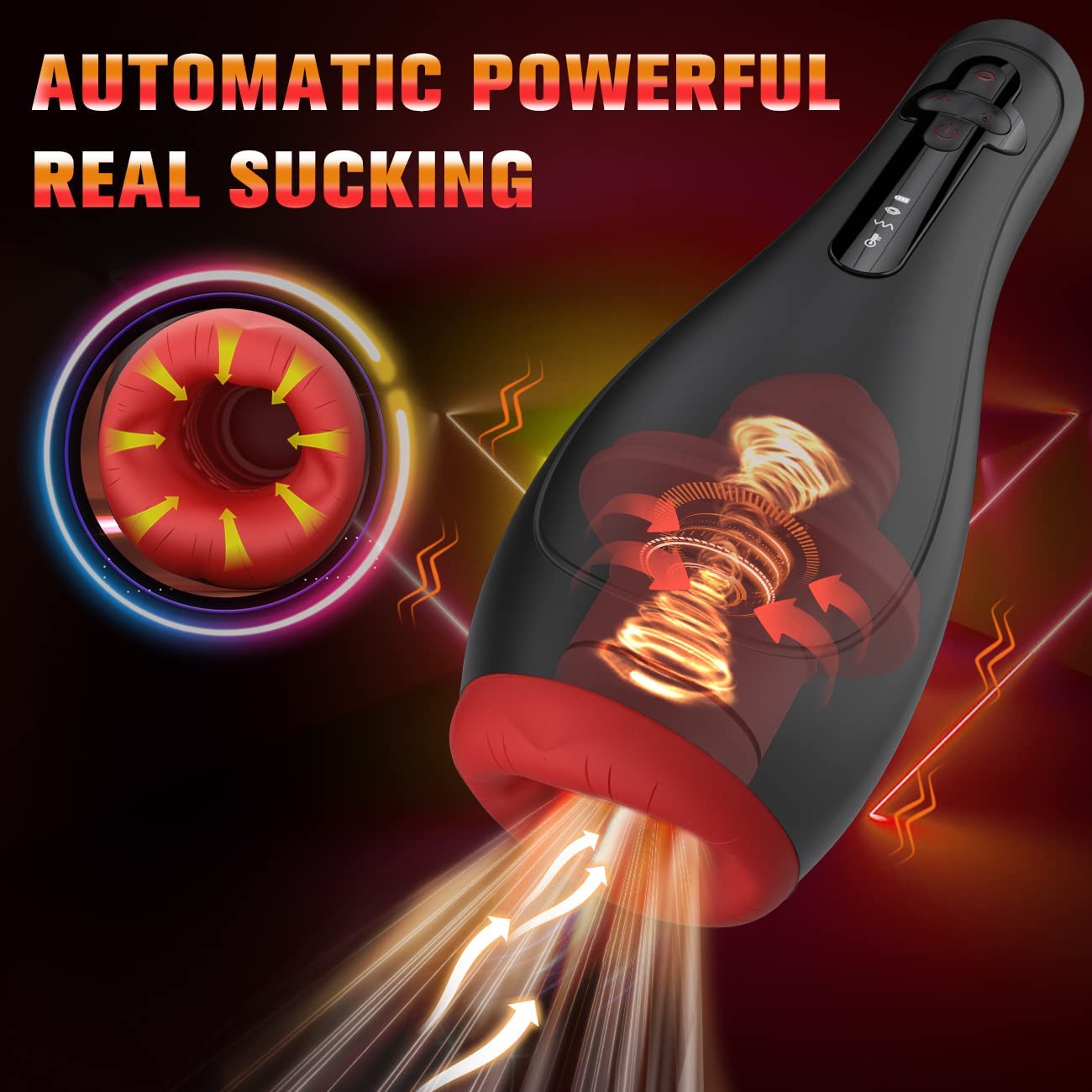 Automatic Sucking Male Masturbators Blowjob Machine with Led Display Screen 5 Suctions & 6 Vibrations, Heating Full Silicone Wrap Sex Toys for Men Masturbation with Pocket Pussy Stroker
