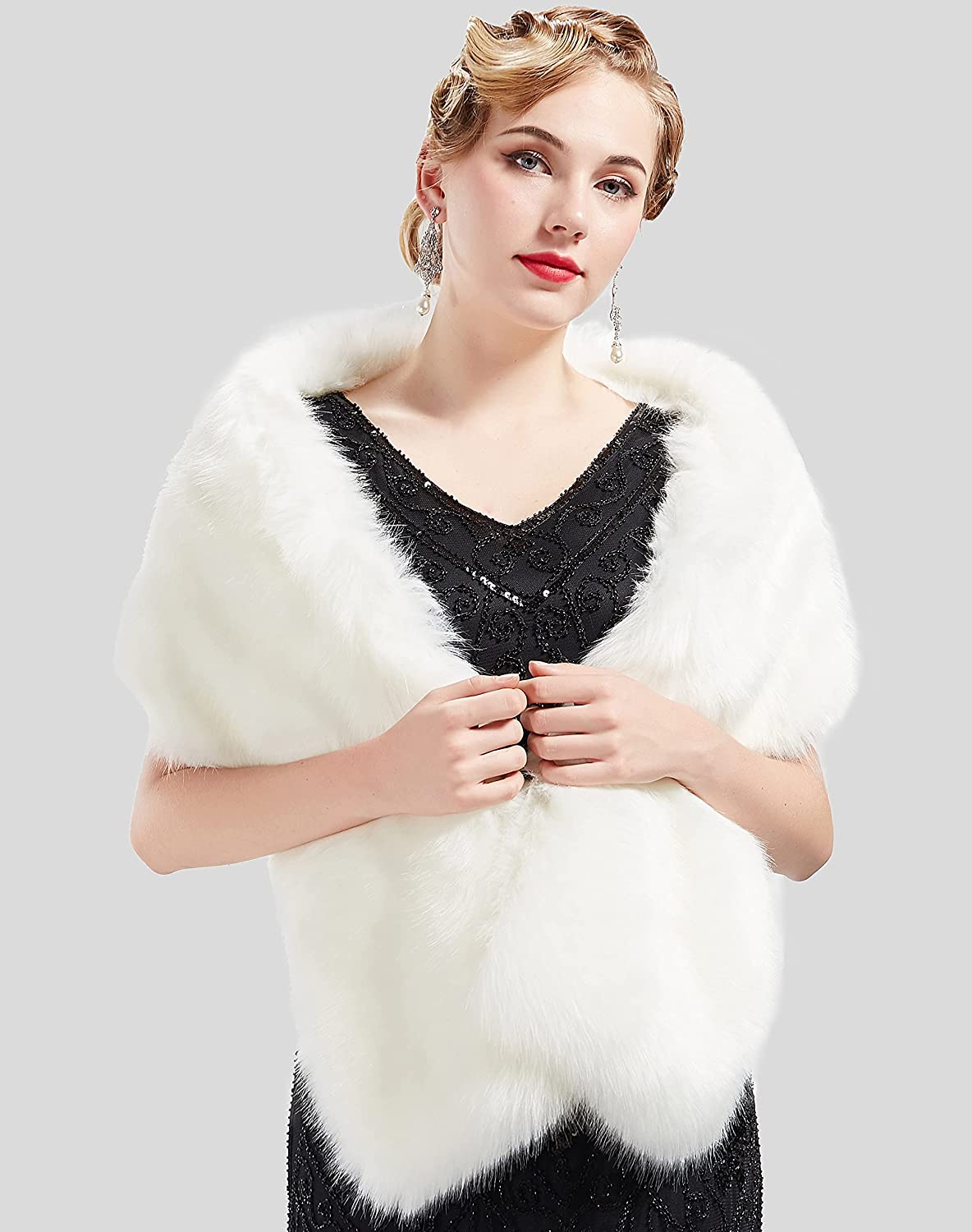BABEYOND Womens Faux Fur Collar Shawl Faux Fur Scarf Wrap Evening Cape for Winter Coat