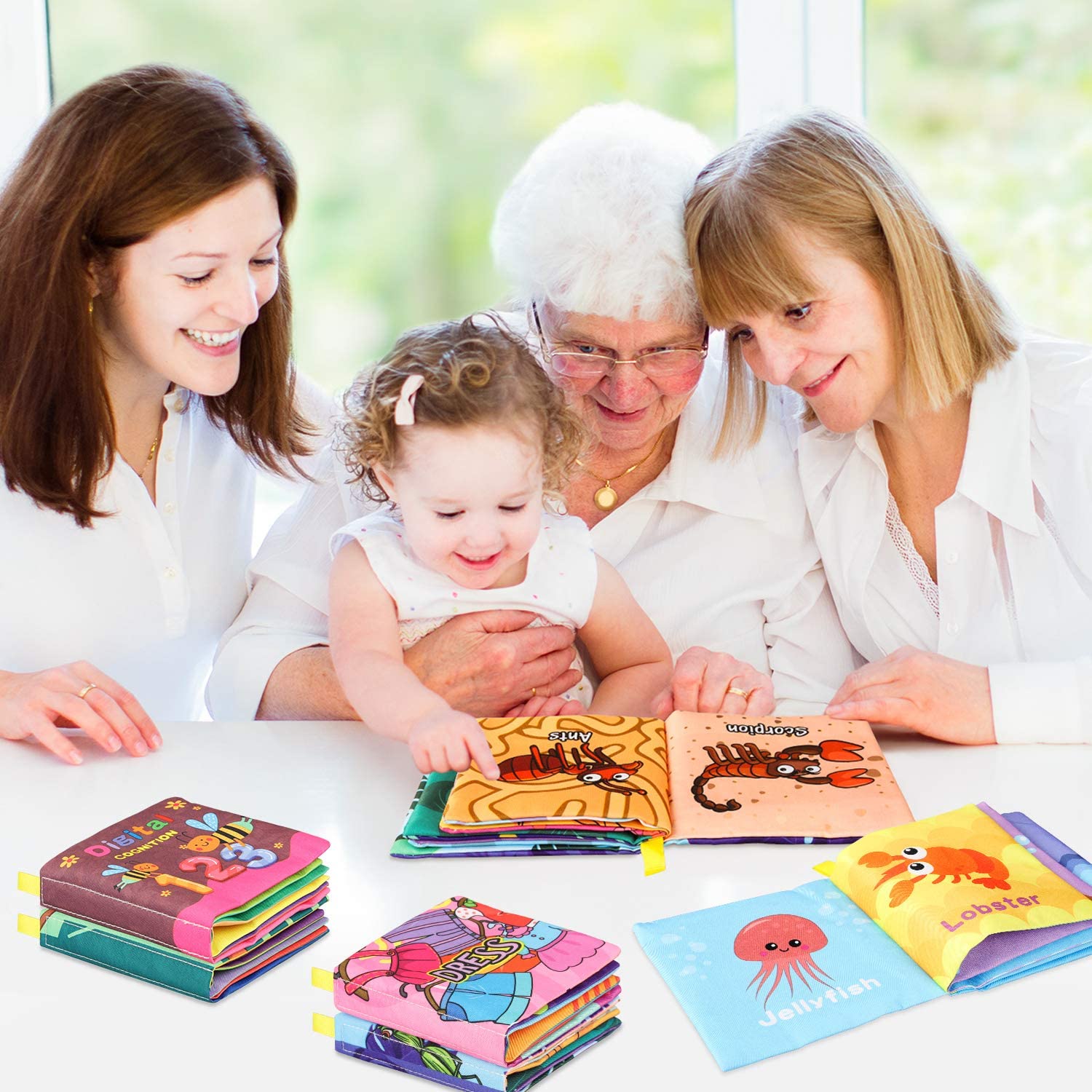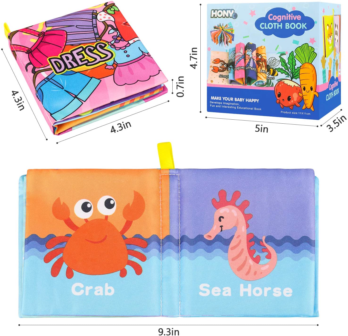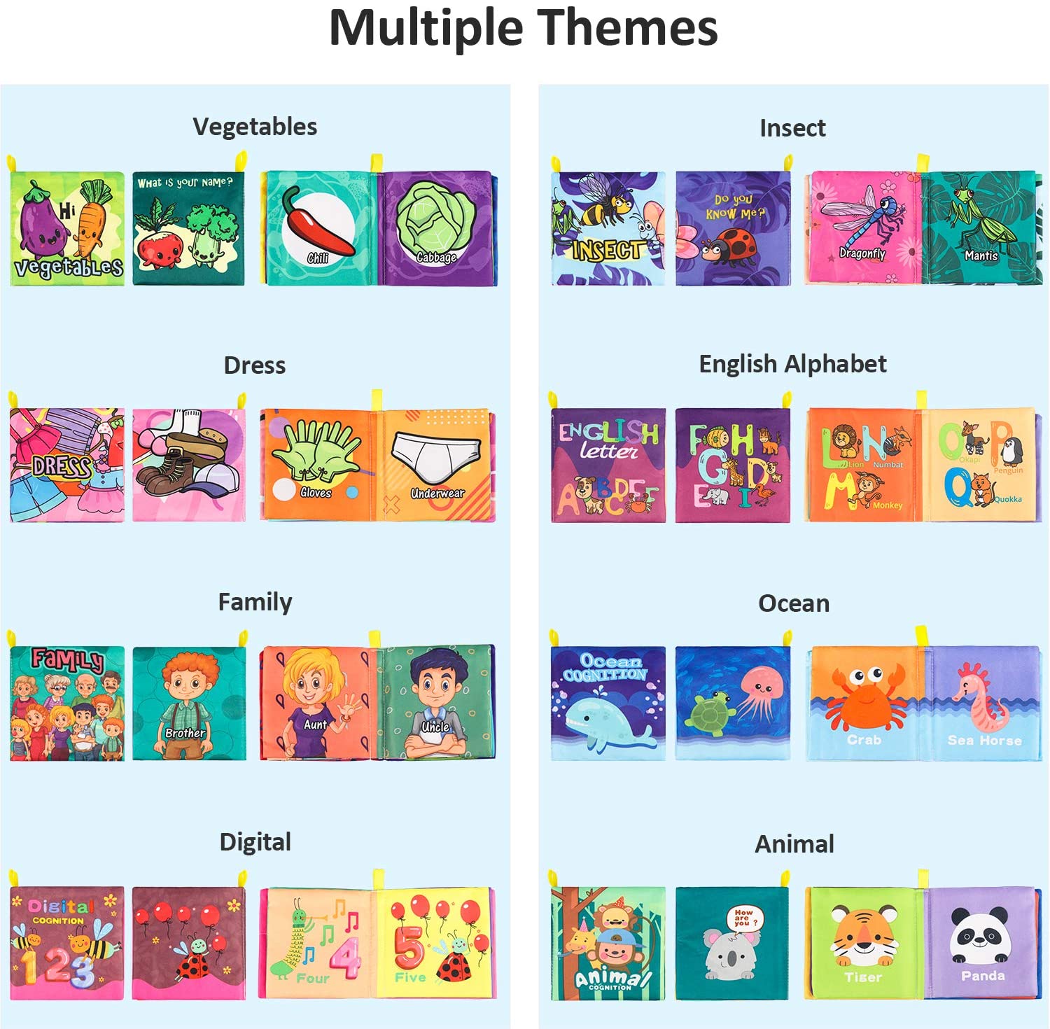 Baby Bath Books,Nontoxic Fabric Soft Baby Cloth Books, Early Education Toys,Waterproof Baby Books for Toddler, Infants Crinkly Cloth Book Bath Toys for 6 to 12 - 18 Months - Pack of 8