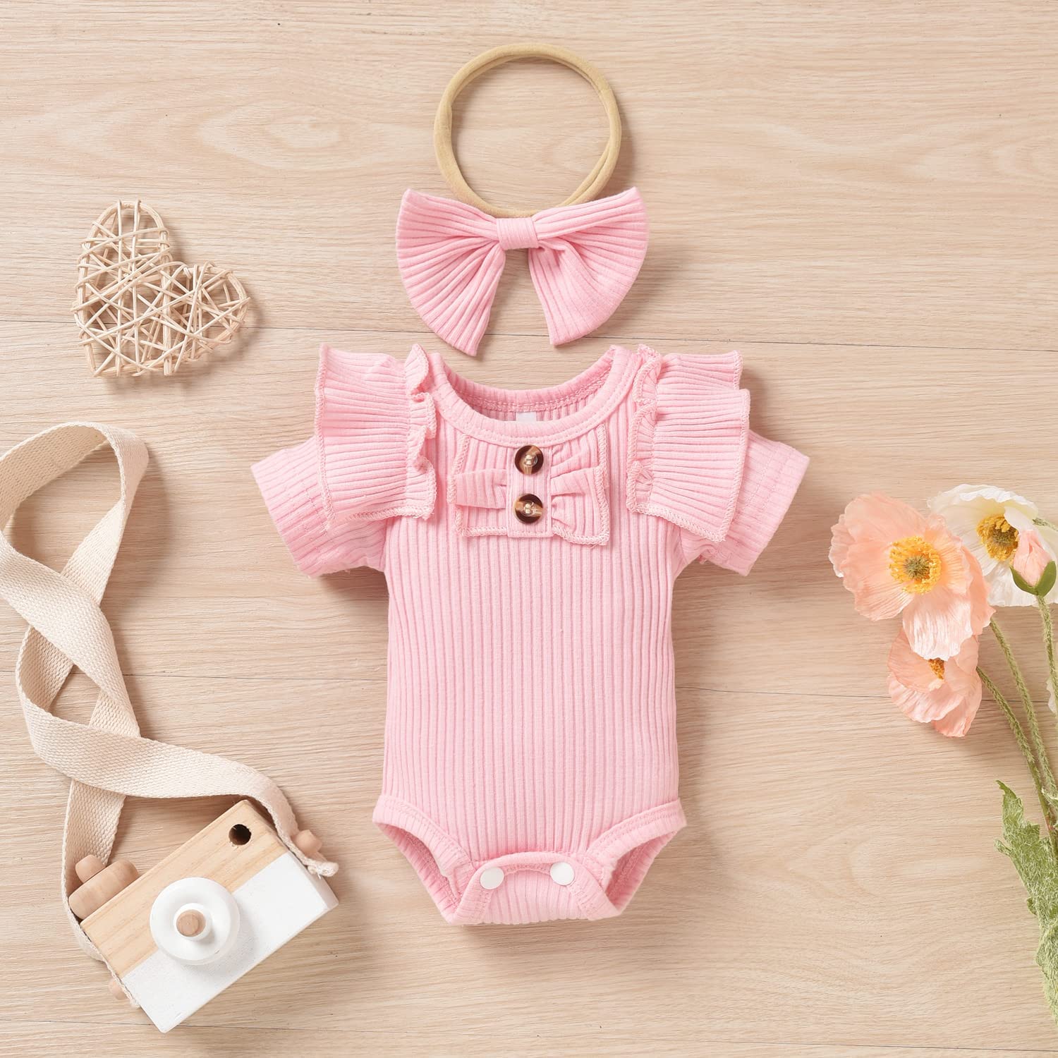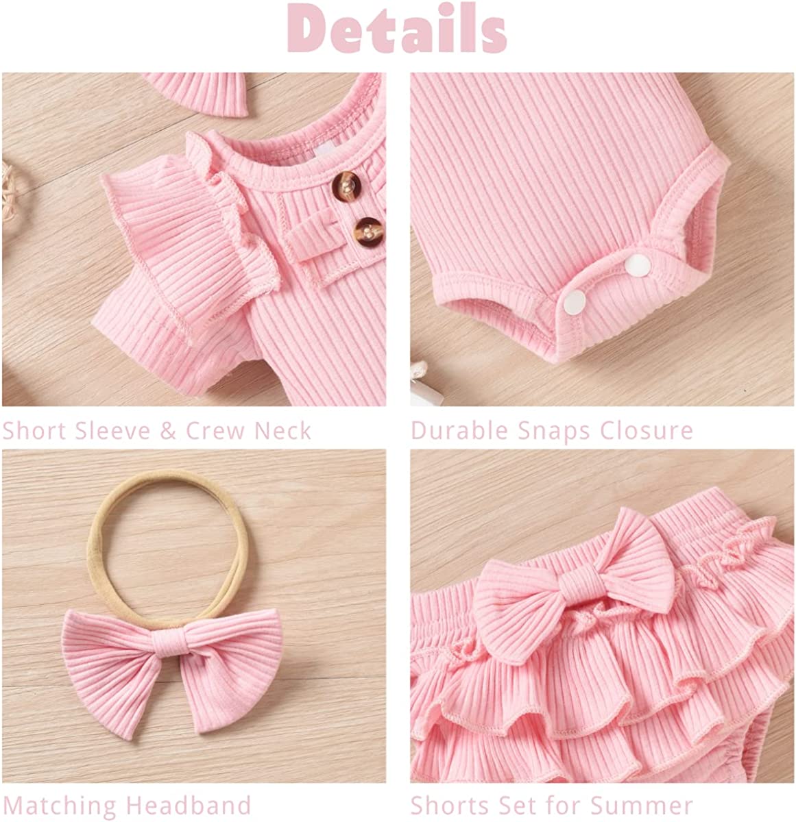 Baby Girls Short Sleeve Bodysuit Bloomer Shorts Ribbed Outfits
