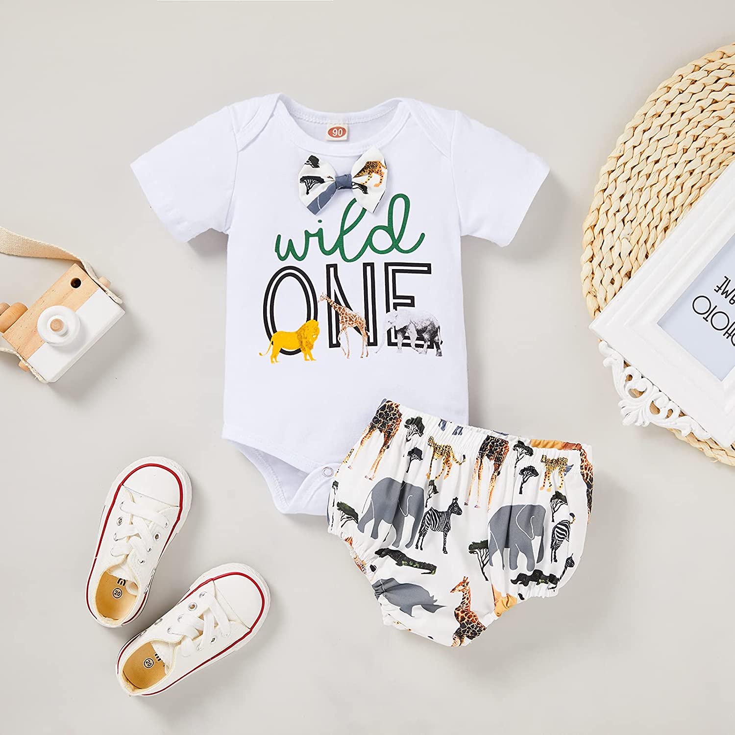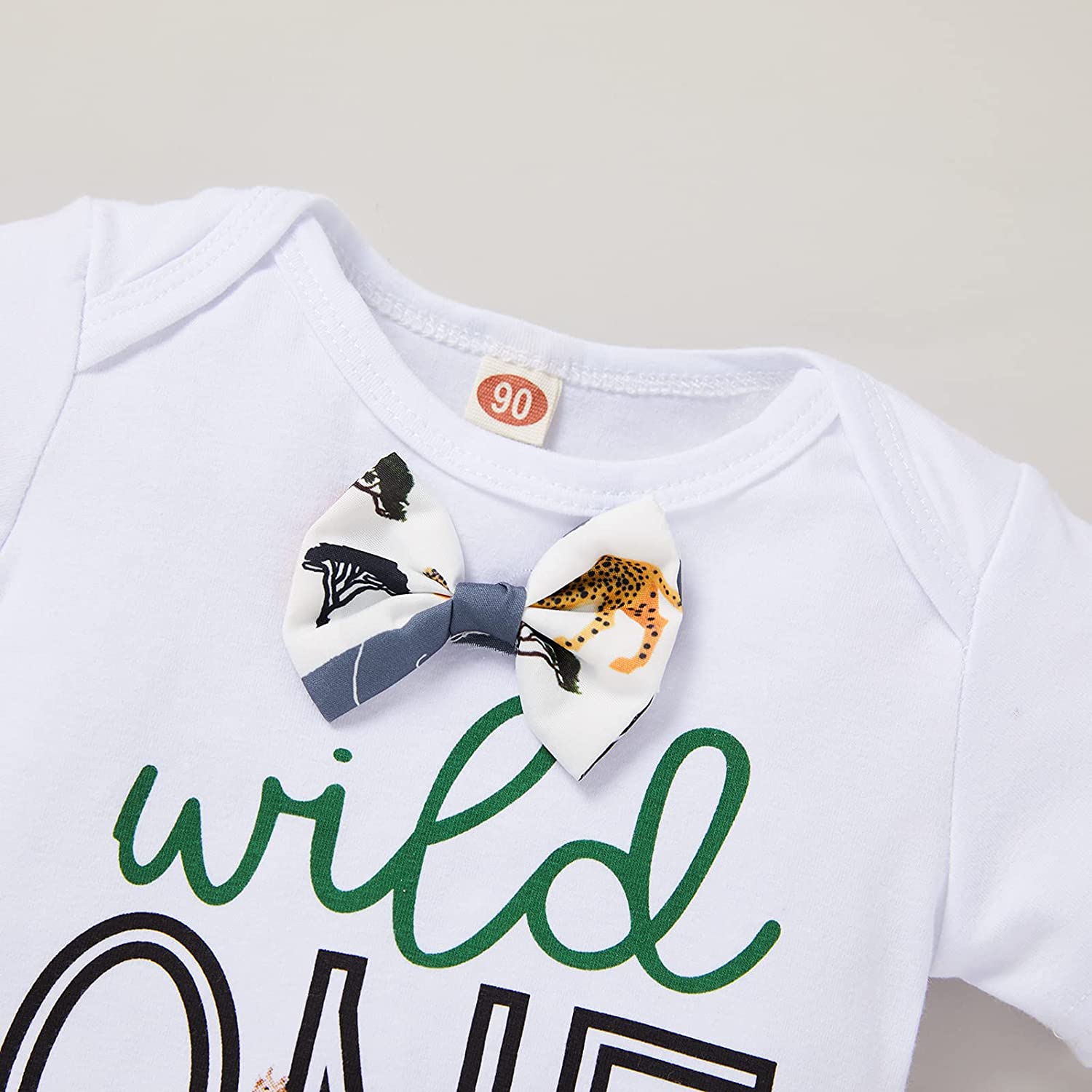 Baby Kids Birthday Giraffe Romper Outfits Infant Boy Wild One Gentleman Bodysuit Cake Smash Party Clothes