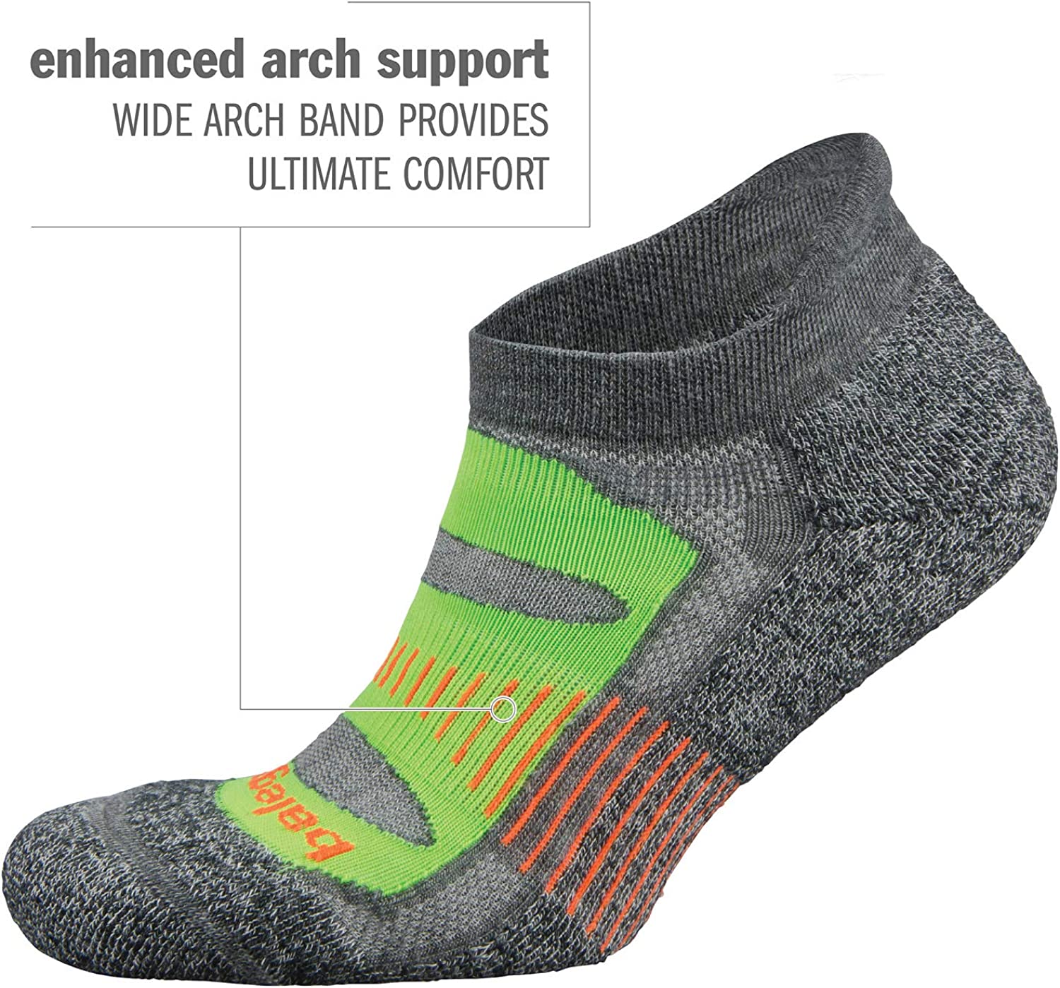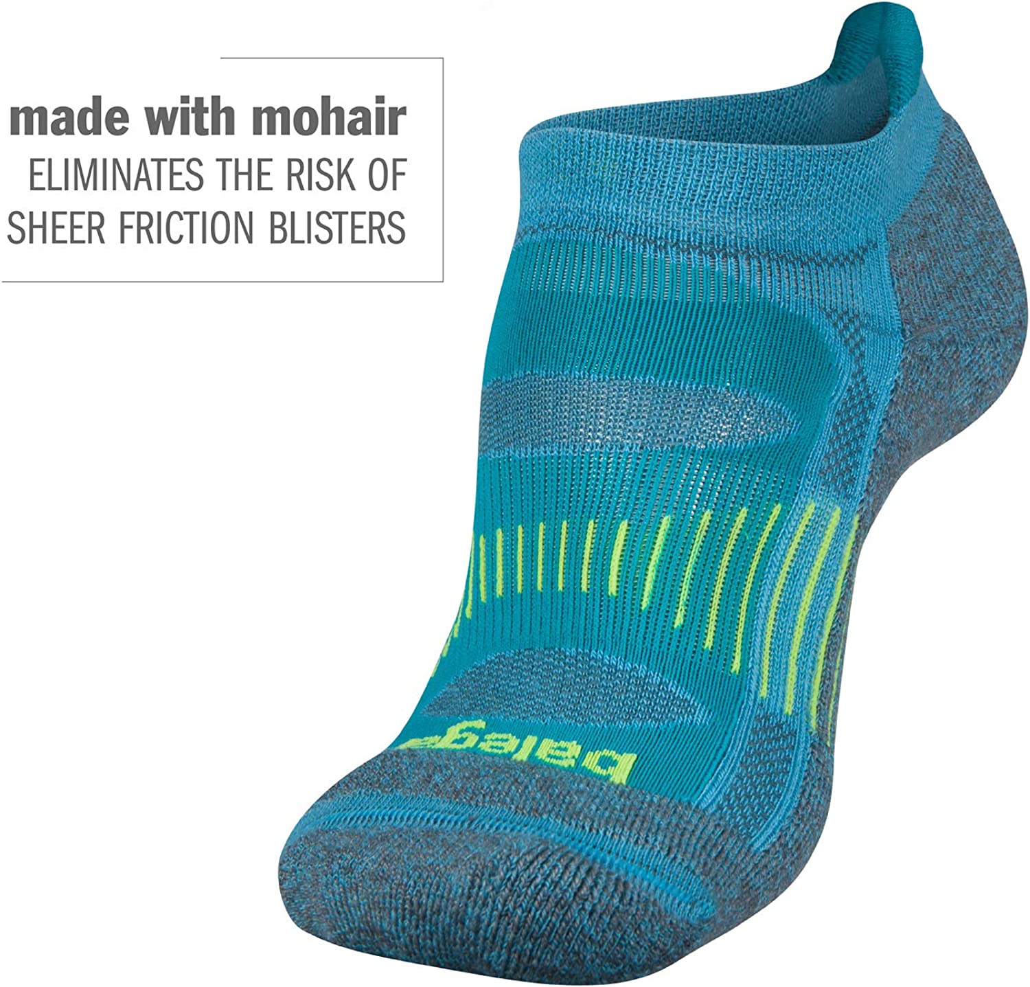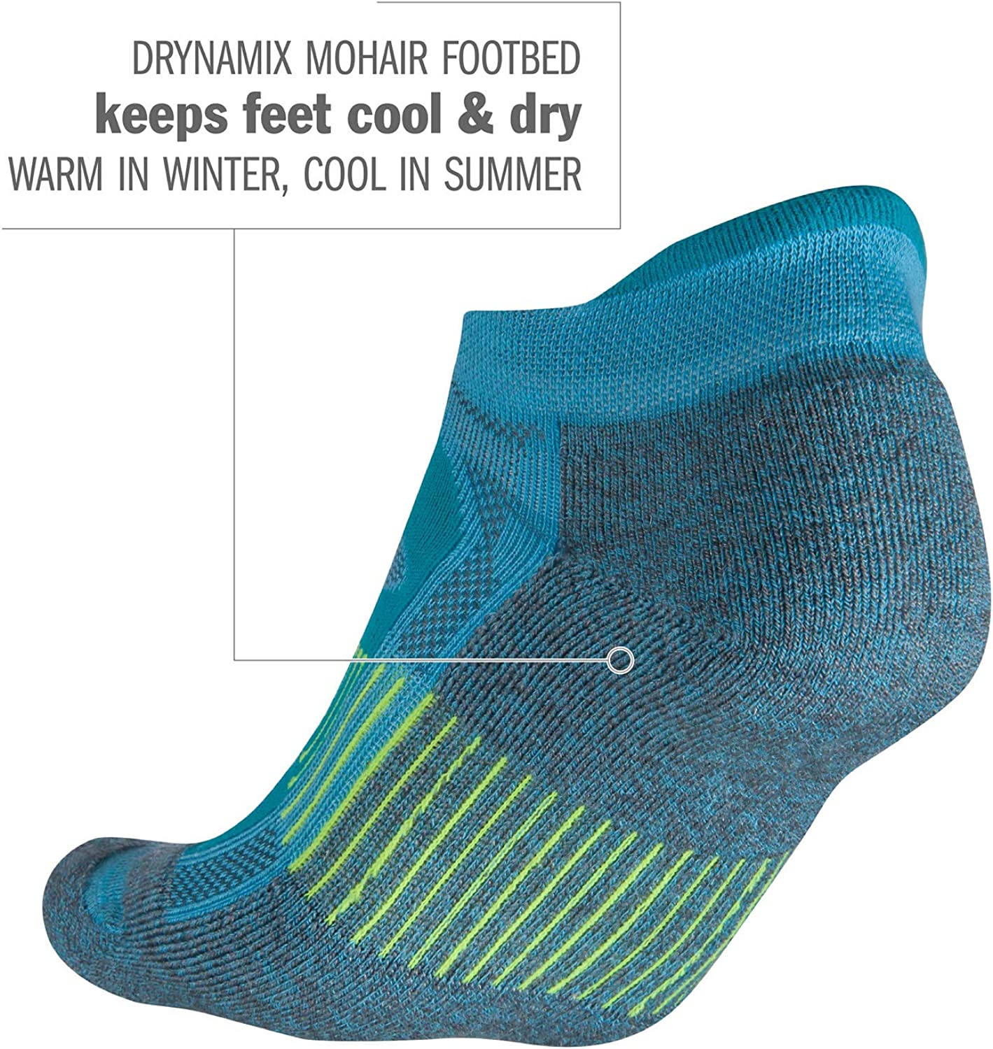 Balega Blister Resist No Show Socks for Men and Women blend the best of nature and technology, by combing natural and synthetic fibers for ultimate anti-blister performance. Soft, durable, natural mohair is known for being anti-friction, strong, shrink-resistant, while proprietary Drynamix, along with specially constructed mesh ventilation panels, wicks moisture away from the skin to keep feet dry. Together they make an exceptional, race-tested sock that protects even the most sensitive skin against sheer friction blisters. The seamless toe box minimizes chafing across the top of the foot, and a high heel tab and extra deep heel pocket ensure that socks won’t slip down into shoes during walks, runs, and hikes. The Balega Blister Resist No Show Socks features high-volume cushioning for comfort during extended activity.