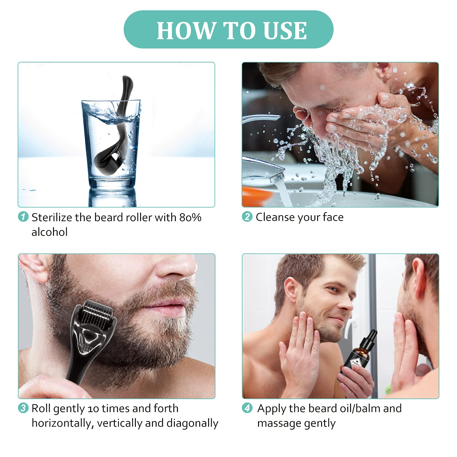 Beard Growth Kit - Derma Roller for Beard Growth, Beard Kit with Beard Roller, Beard Growth Oil, Beard Balm, Beard Comb, Patchy Beard Growth - Fathers Gifts for Dad - Gifts for Men Husband Boyfriend