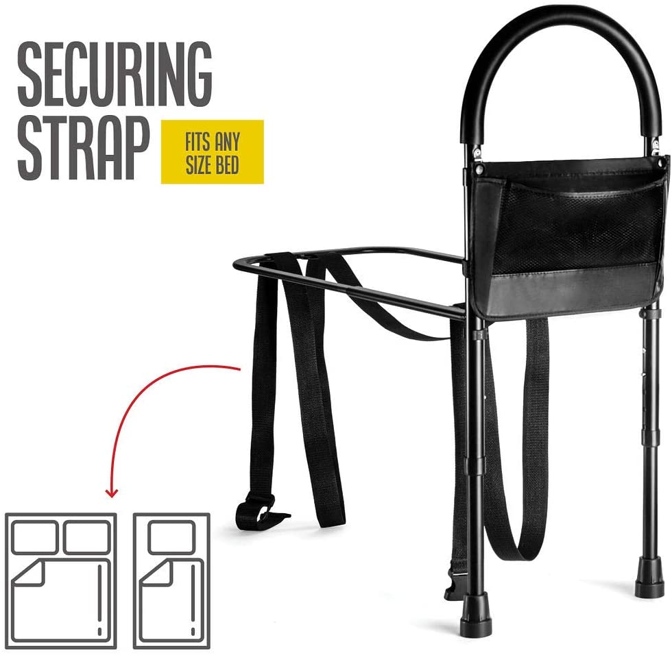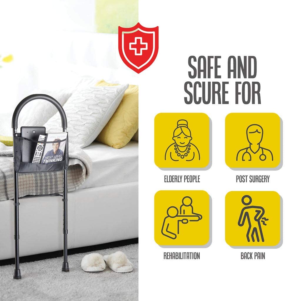Bed Assist Rail with Adjustable Heights - Bed Assist bar with Storage Pocket - Bed Rails for Seniors with Hand Assistant bar - Easy to get in or Out of Bed Safely with Floor Support - by Medical king