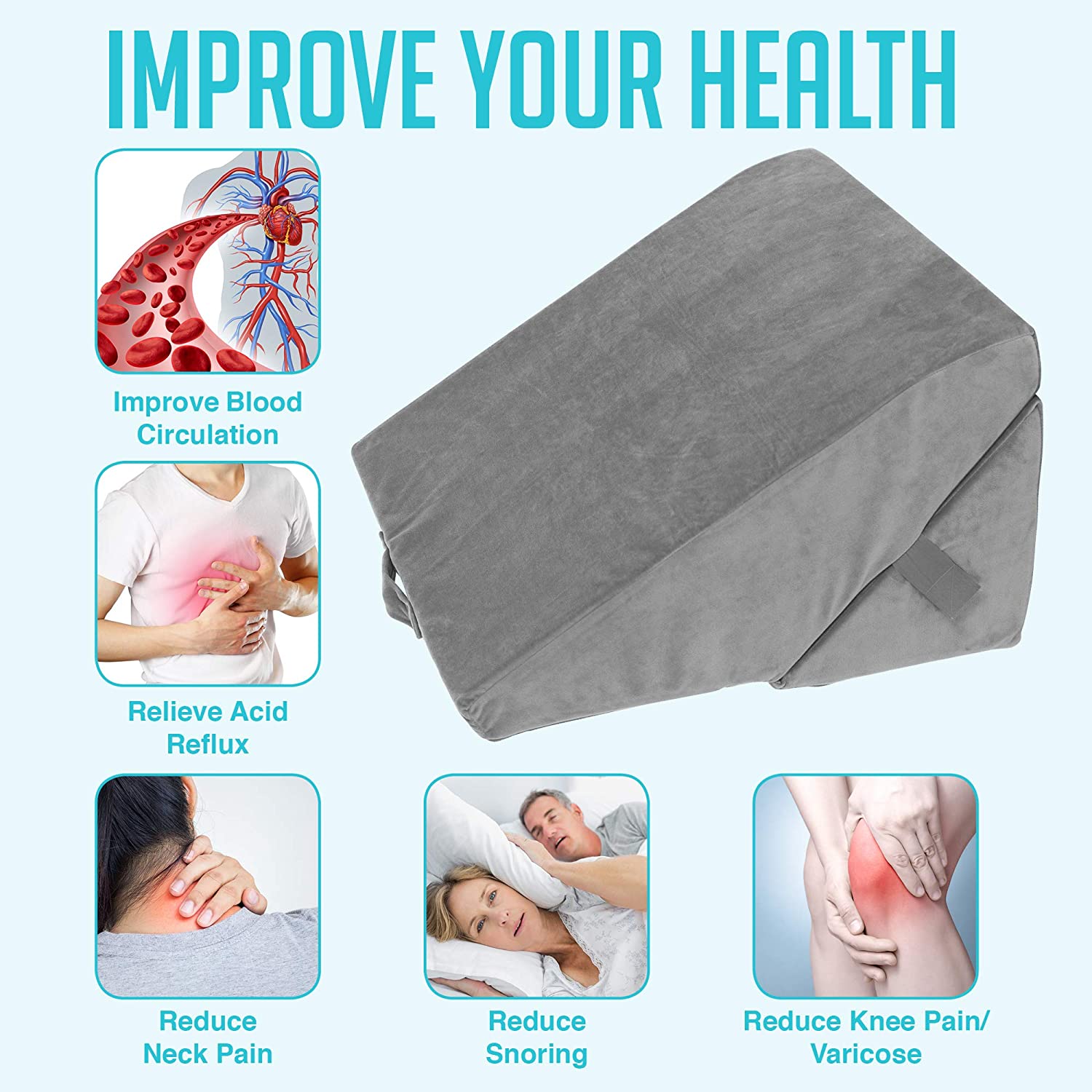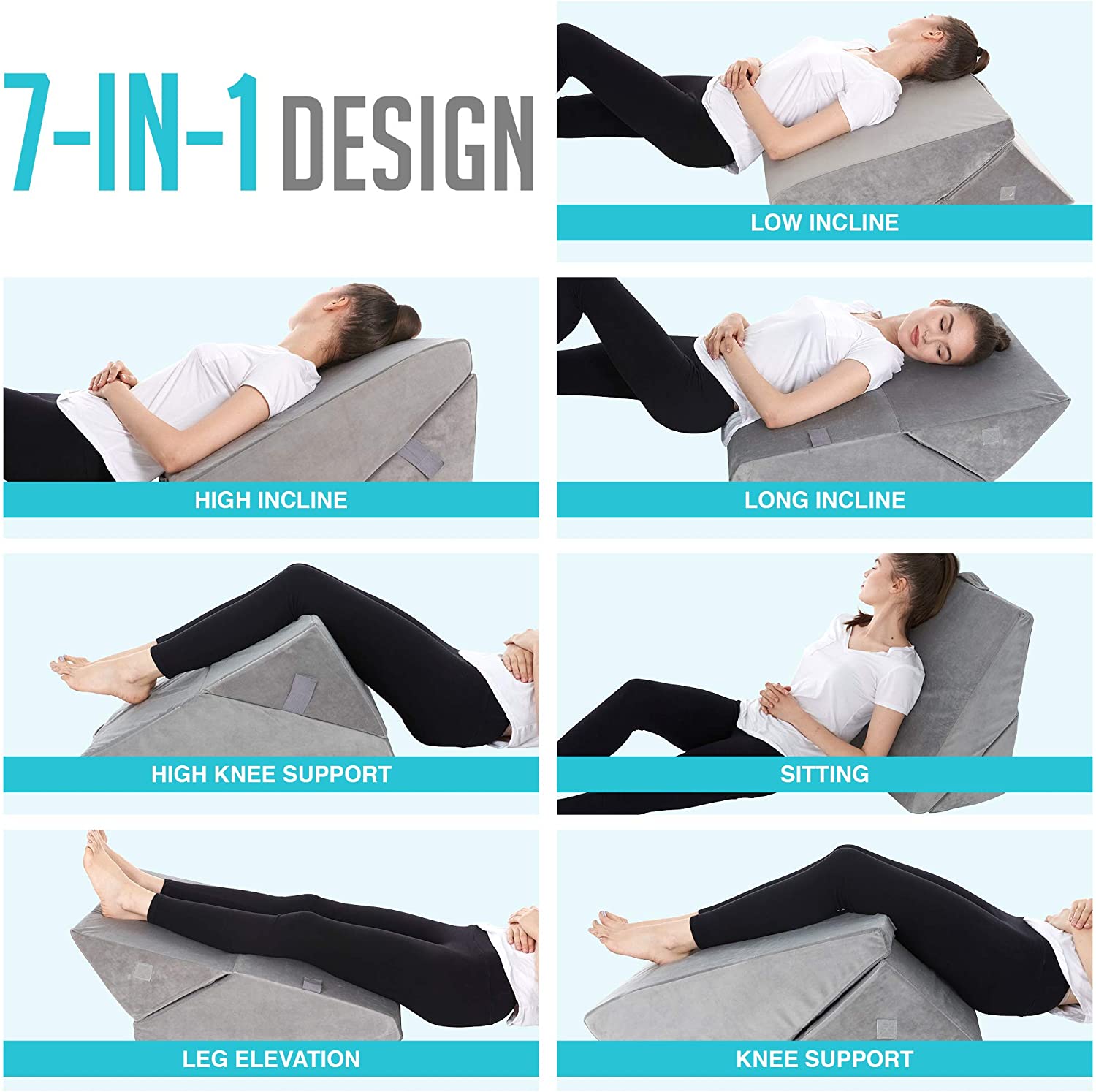 Bed Wedge Pillow - Adjustable 9&12 Inch Folding Memory Foam Incline Cushion System for Legs and Back Support Pillow - Acid Reflux, Anti Snoring, Heartburn, Reading – Machine Washable