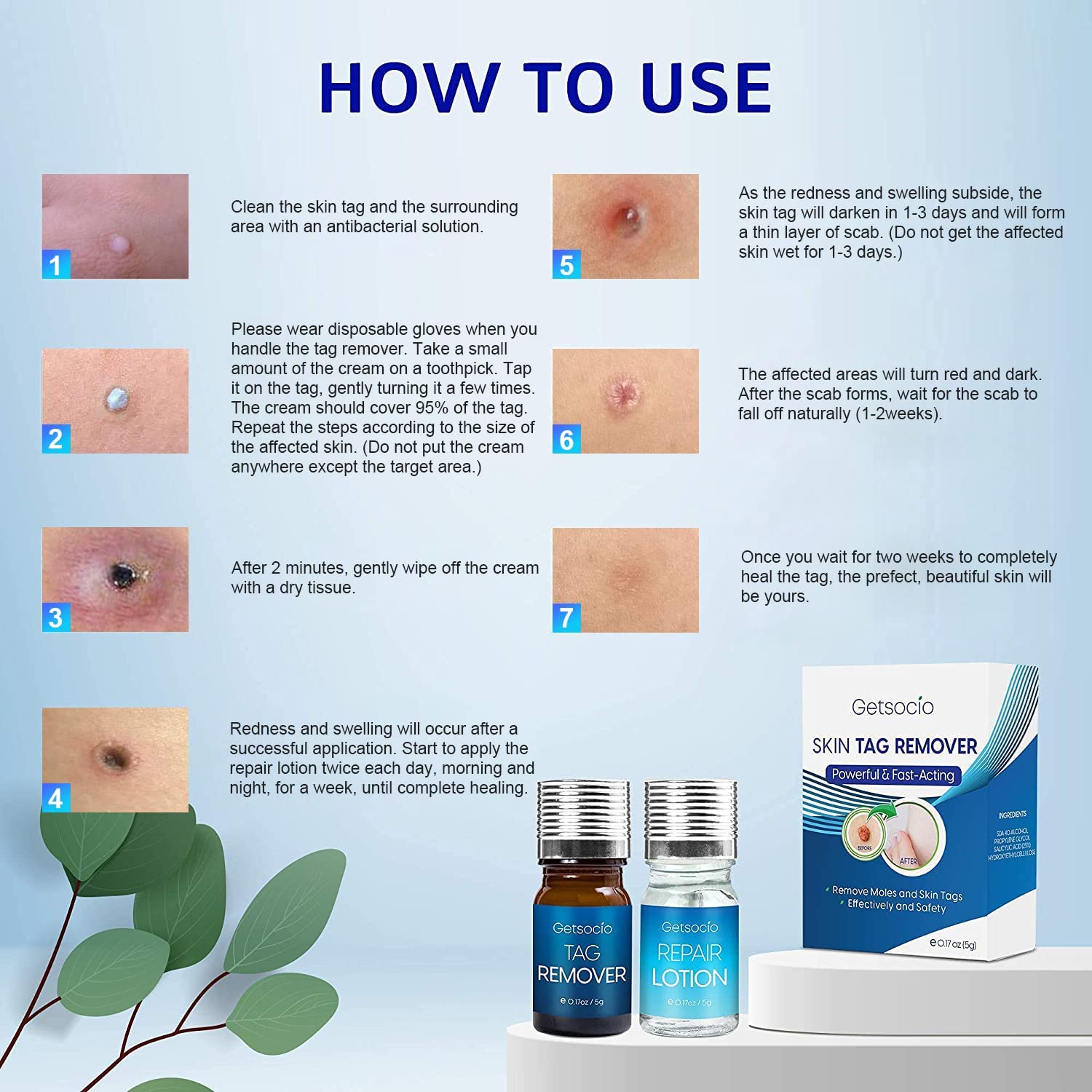 Best Skin Tag Remover & Mole Removal by Getsocio- Repairs Skin, Removes Blemishes, Remover & Repair Lotion Set, Easy to Use at Home