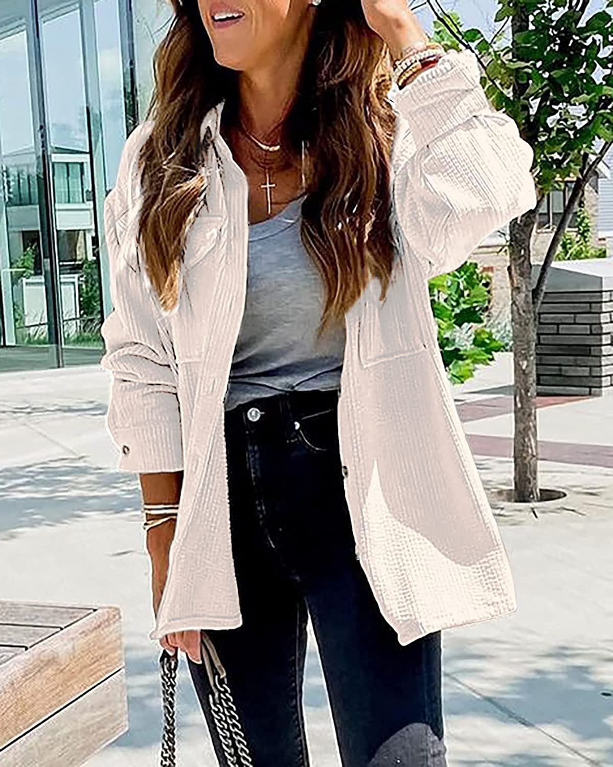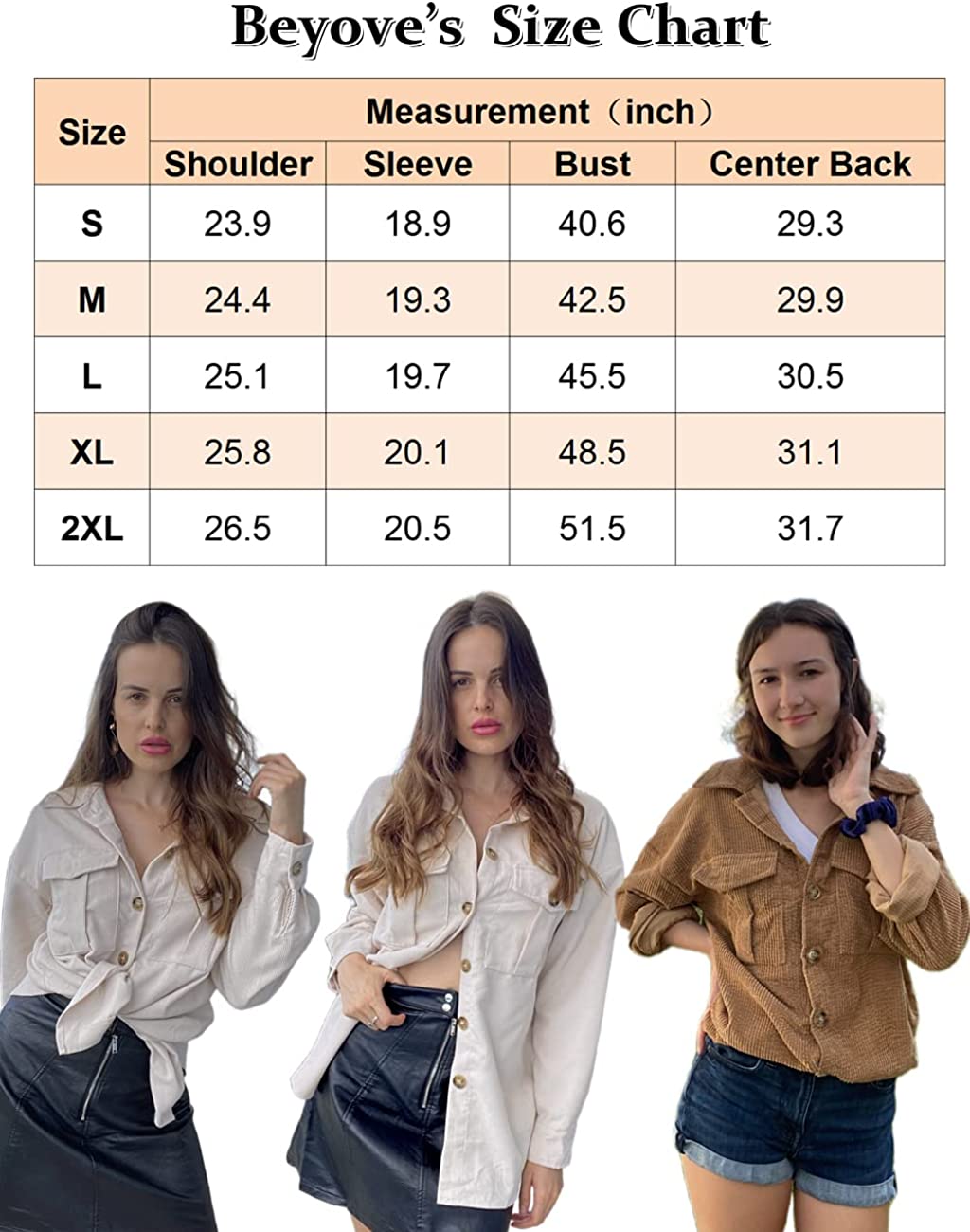 Beyove Women's Corduroy Shirt Long Sleeve Button Down Shacket Jacket Casual Oversized top with Pockets