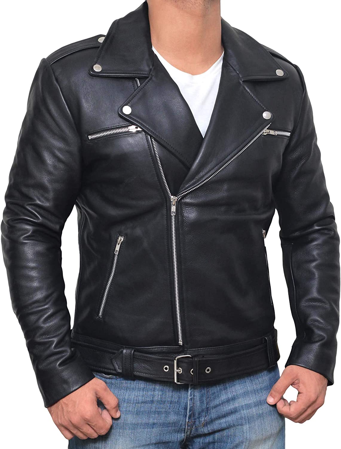 Black Motorcycle Mens Leather Jacket - Real Lambskin Biker Leather Jacket for Men