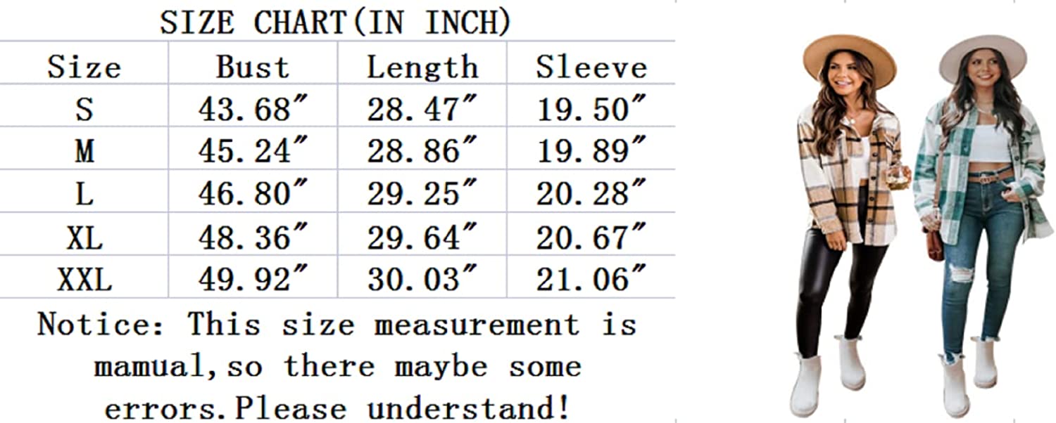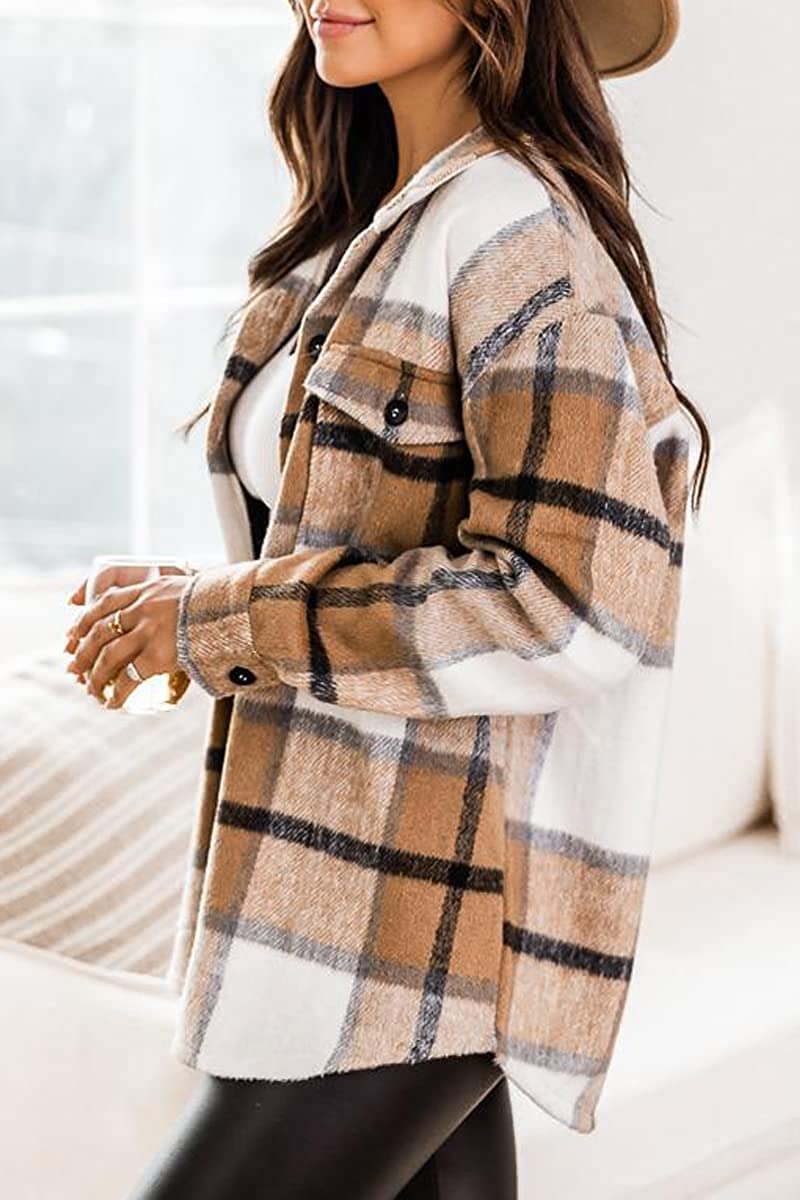 Blansdi Women’s Casual Plaid Flannel Shacket Jacket Oversized Button Down Long Sleeve Fall Shirt Jacket Coat Tops