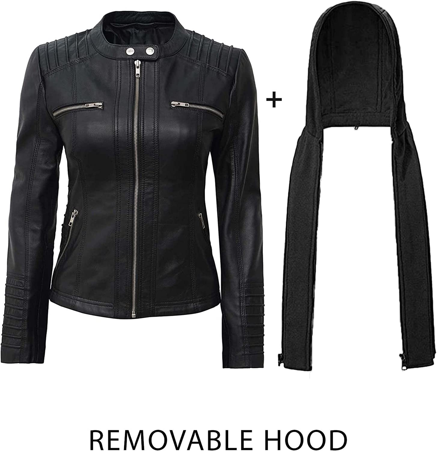 Blingsoul Leather Jacket Women - Real Lambskin Womens Leather Jacket with Removable Hood