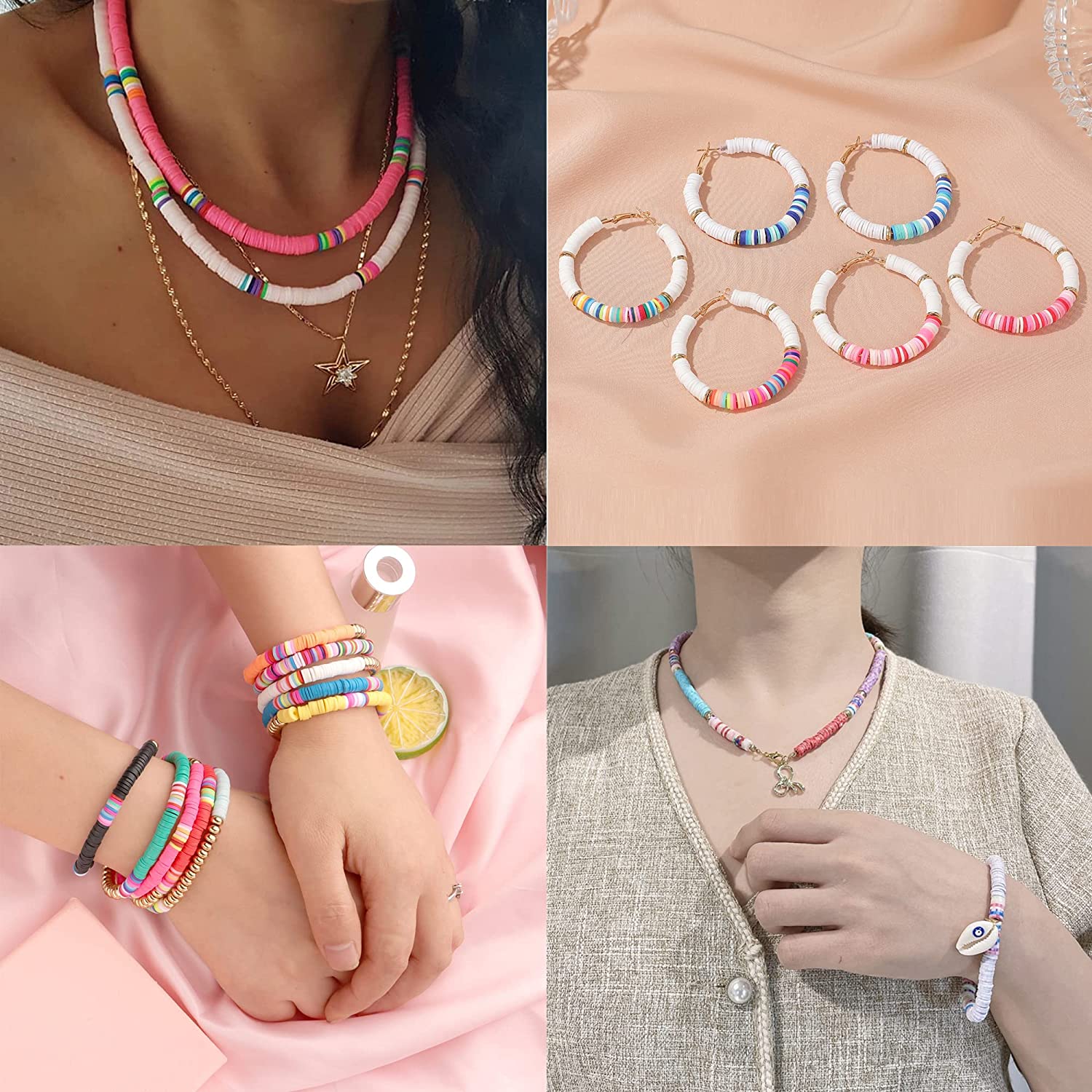 These DIY heishi beads are very suitable for DIY necklaces, bracelets, earrings, jewelry, hair clips, clothing decorations, key chains and other crafts. Full of summer flavor. Creative Gifts:This set of jewelry kits is very suitable as a gift. They help cultivate children's creativity and practical skills, and can also be used to create warm parent-child time between family members. If you will make handmade decorations, necklaces or bracelets as gifts for Christmas, birthday, Valentine's Day, Mother's Day, it will also be a very good choice. Tip:These colorful clay flat beads are cut by hand. If the thickness of the clay beads you receive is inconsistent, please understand.