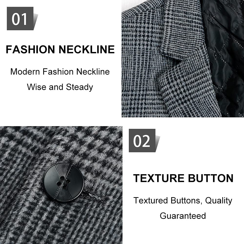 BOJIN Mens Trench Coat Wool Blend Top Pea Coat Winter Long Single Breasted Classic Stylish Business Overcoat