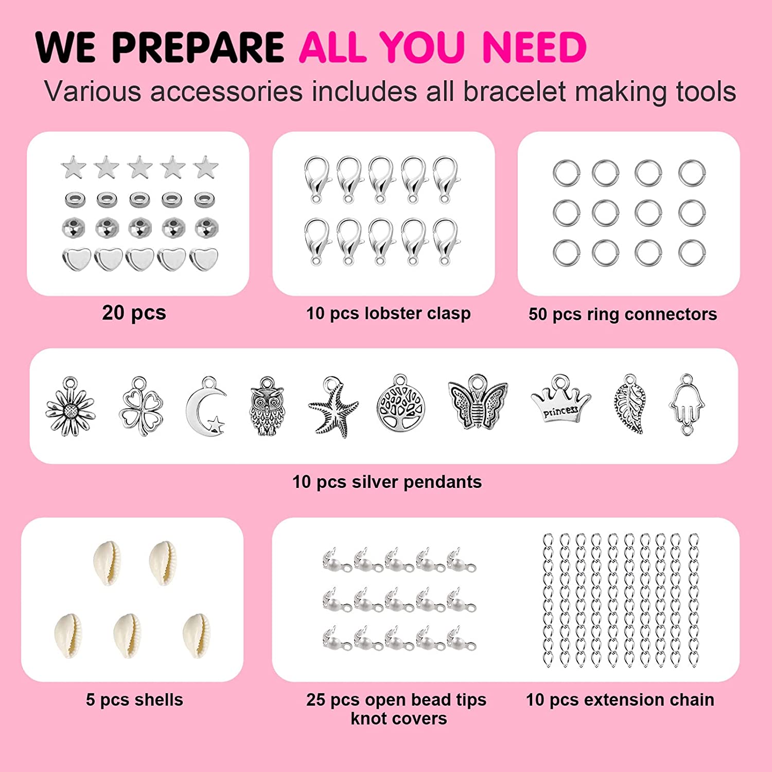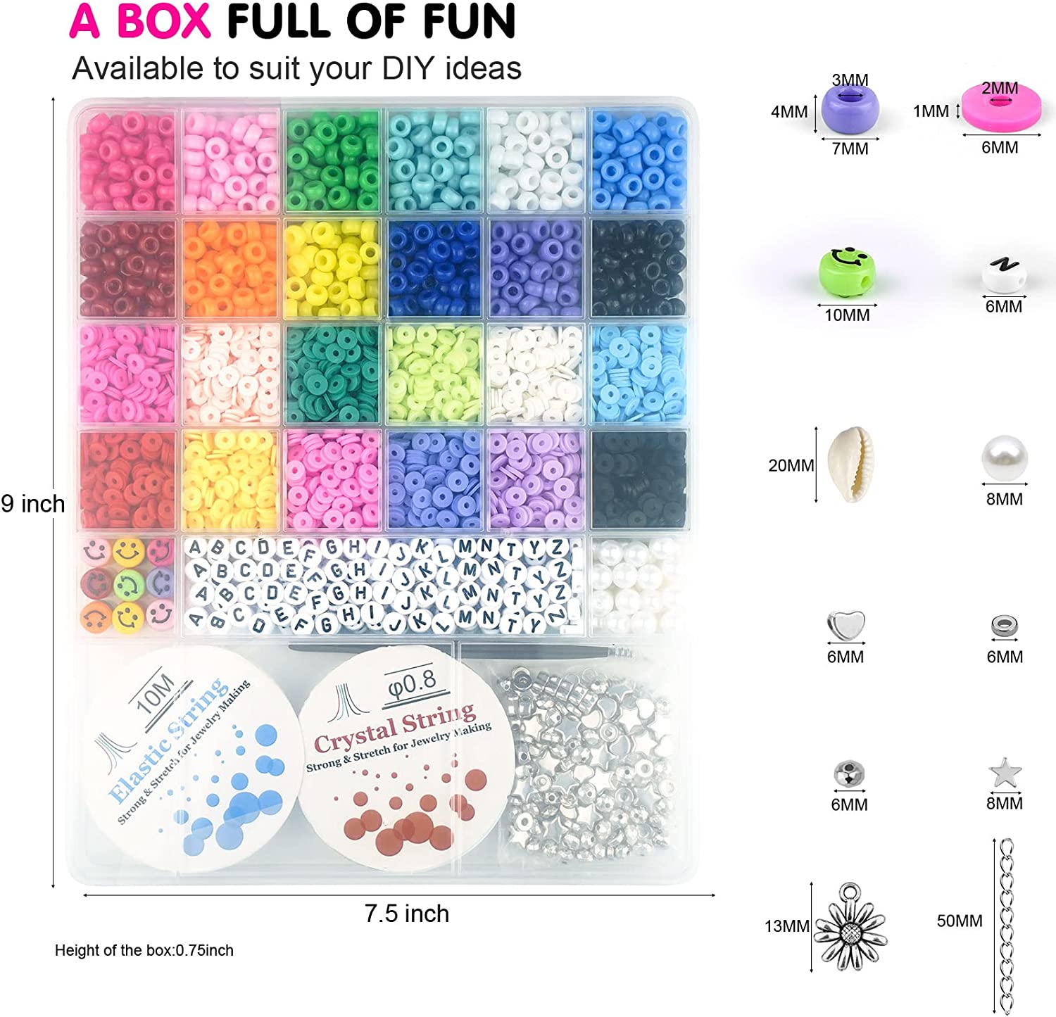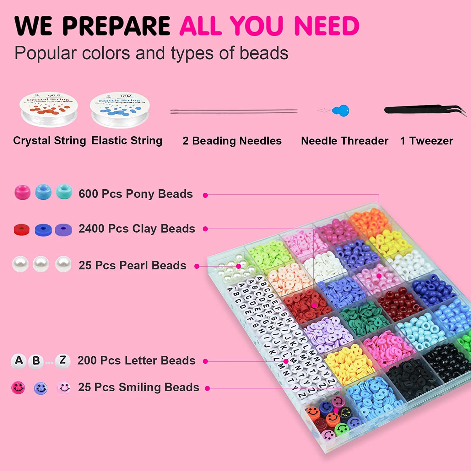 Bracelet Making Kit,Velavior Bead Kit Including 24 Colors 2400pcs Clay Beads,600pcs Pony Beads and 200pcs Letter Beads for Bracelets Jewelry Making with Charm Pendants and Elastic Strings