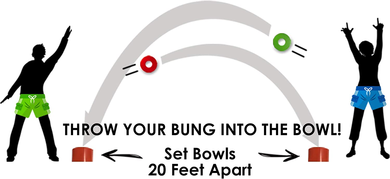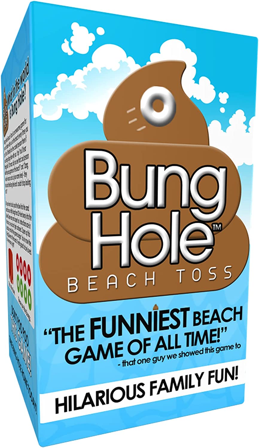 BUNGHOLE is a simple ring toss game with some harmless putty humor. We make competition fun, Easy, and so much lighter than heavy corn hole boards people lug to the beach Everything in a neat little package – Included in the BUNGHOLE box is everything you need to enjoy. It includes a mesh carrying bag, 8 bung rings, and two bowls. light weight packaging allows you to easily pack for vacation or carry on. . Play It anywhere, year round – although this product is perfect for the beach, you can also play It on grass, dirt, and even snow NOTE: PUT THE BOWLS IN HARD PACKED SAND WHERE POSSIBLE Truly a versatile game for multiple weather conditions and environments. Bring the family together– we recommend this game for all ages. The competition can get intense, but the humor keeps it light. BUNGHOLE can bring generations together in a way that very few games can. Easy to set up, easy to play – set up Simply includes twisting and pushing the sand diggers of the bowls into the surface of the ground until its flush with the ground, about 20ft+ apart. Each team gets 4 bung rings each and you’re ready to play It’s all in the details – bungs are made of a custom made material, dip coated in PVC for a smooth feel and nice weight for tossing. The bungs are made of a high impact PP material for durability while placed in the ground. Made by an American inventor