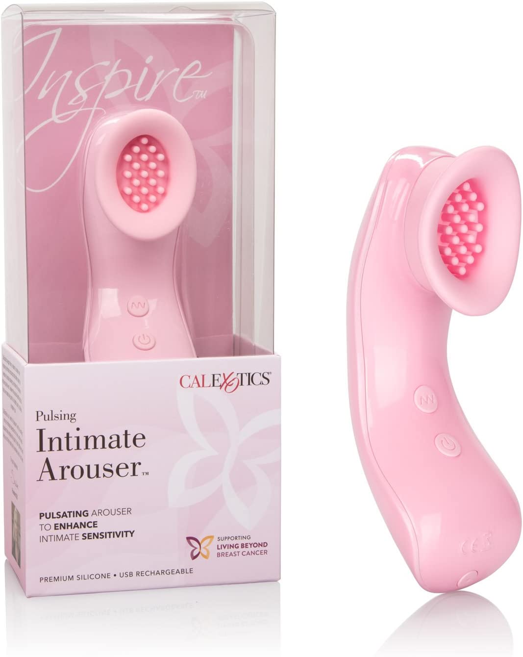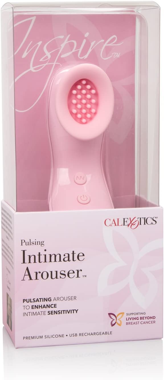CalExotics Inspire Pulsing Intimate Arouser packs intense multi-function vibrations into a sensually contoured package. Use the ergonomically shaped cup to sensually stir your most intimate sweet spot and envelop yourself in a deep, flickering gyrations. This unique pulsating stimulator is designed by women for women to accelerate feminine arousal and increase intimate pleasure while flickering nubs tease you into submission. Once you find just the right spot, flicker through 10 intense vibration, pulsation and escalation functions until you find the setting that sends you soaring.