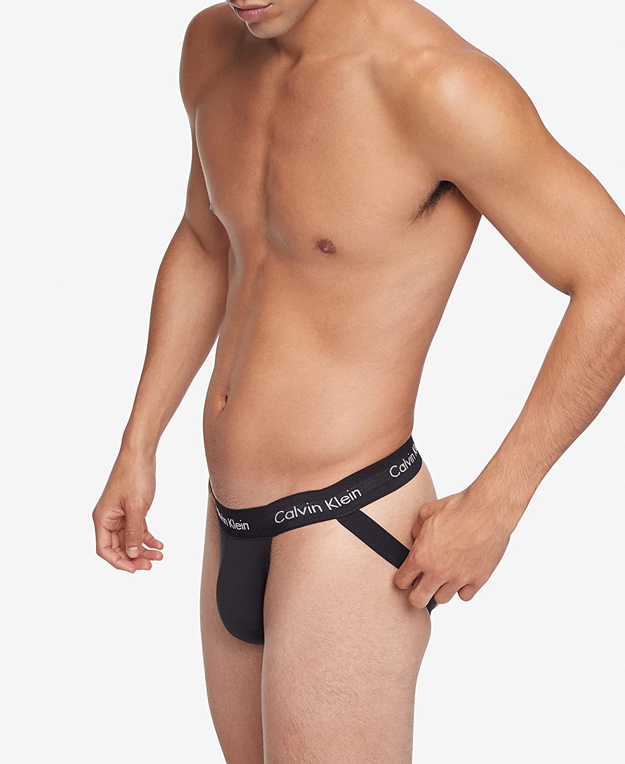 A Calvin Klein icon. The essential designer jock strap reinvented in extra-soft cotton stretch with a low rise fit. Made with wicking to keep you cool and dry. Designed with the original Calvin Klein logo waistband, this is a sporty look that feels sexy everyday. For the minimalist.