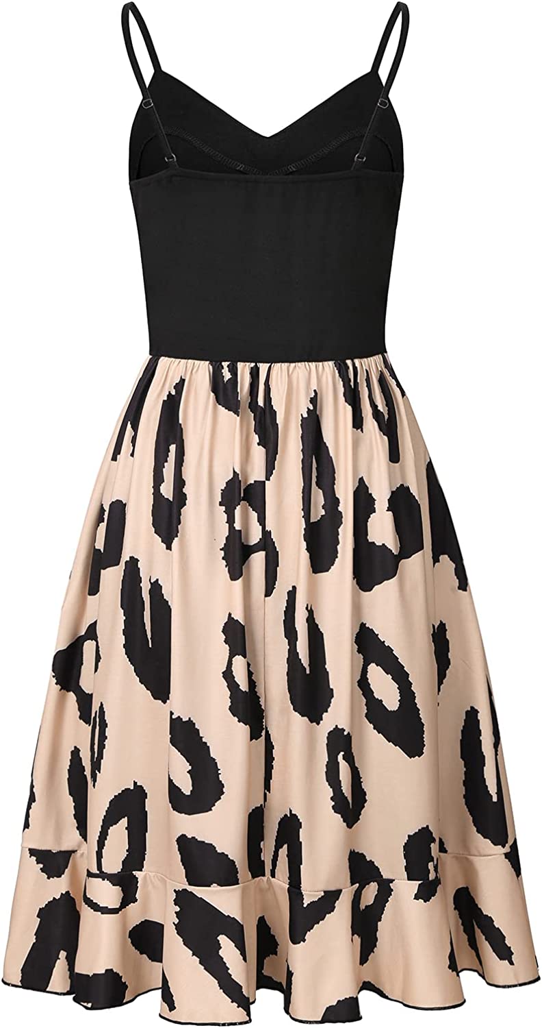 Casual Dresses for Women Sleeveless V Neck Floral Summer Beach Dress A Line Spaghetti Strap Sundresses with Pockets