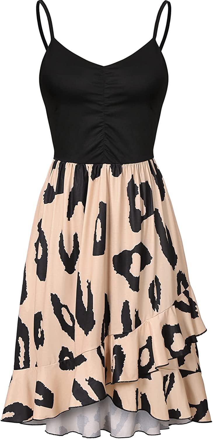 Casual Dresses for Women Sleeveless V Neck Floral Summer Beach Dress A Line Spaghetti Strap Sundresses with Pockets
