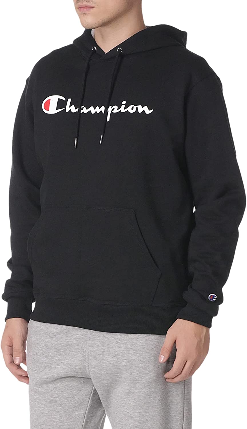 Made for any season, our Men's Powerblend Hoodie is a customer favorite offering the best of warmth and durability, without the extra weight. This season's pop of color logo amps up your sport style with joggers or sweatpants. Exceptionally soft, It resists pilling and shrinking, so it keeps its great fit and comfort no matter how hard you play. Wear this midweight fleece workout to weekend, it's made with extra stitch details for durability, a double-layer hood with metal grommets, soft back neck tape and hand-warming pouch pocket. Part of our Champion Made initiative, Powerblend fleece is made with traceable U.S. grown cotton and requires 2-5 times less water. Even better, we use up to 10% recycled polyester fibers, which helps keep recycled plastic bottles out of landfills.